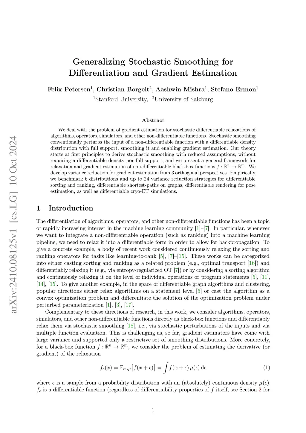 We deal with the problem of gradient estimation for stochastic differentiable relaxations of algorithms, operators, simulators, and other non-differentiable functions. Stochastic smoothing conventionally perturbs the input of a non-differentiable function with a differentiable density distribution with full support, smoothing it and enabling gradient estimation. Our theory starts at first principles to derive stochastic smoothing with reduced assumptions, without requiring a differentiable density nor full support, and we present a general framework for relaxation and gradient estimation of non-differentiable black-box functions . We develop variance reduction for gradient estimation from 3 orthogonal perspectives. Empirically, we benchmark 6 distributions and up to 24 variance reduction strategies for differentiable sorting and ranking, differentiable shortest-paths on graphs, differentiable rendering for pose estimation, as well as differentiable cryo-ET simulations.