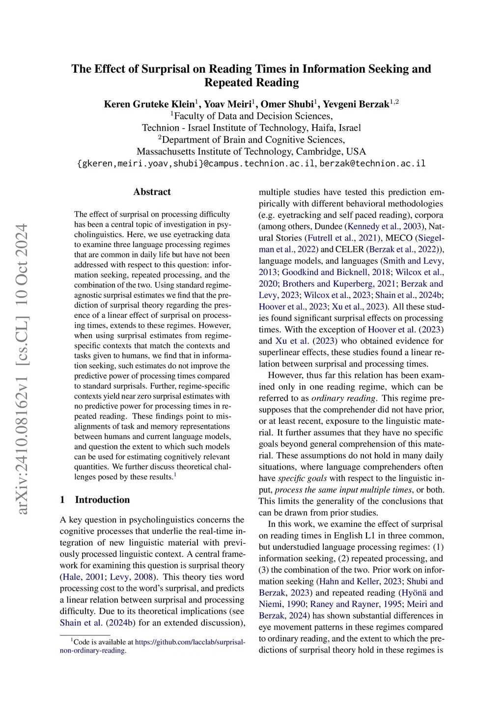 The Effect of Surprisal on Reading Times in Information Seeking and