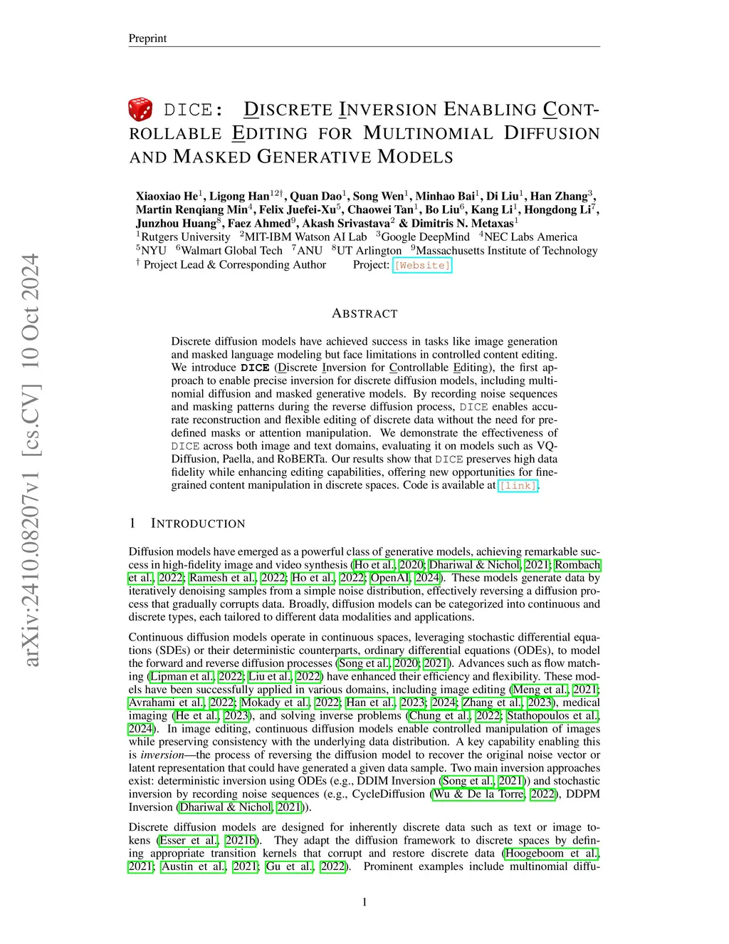 DICE: Discrete Inversion Enabling Controllable Editing for Multinomial Diffusion and Masked Generative Models