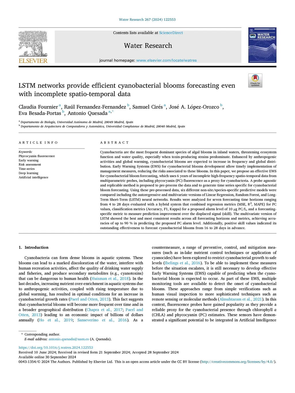 LSTM networks provide efficient cyanobacterial blooms forecasting even