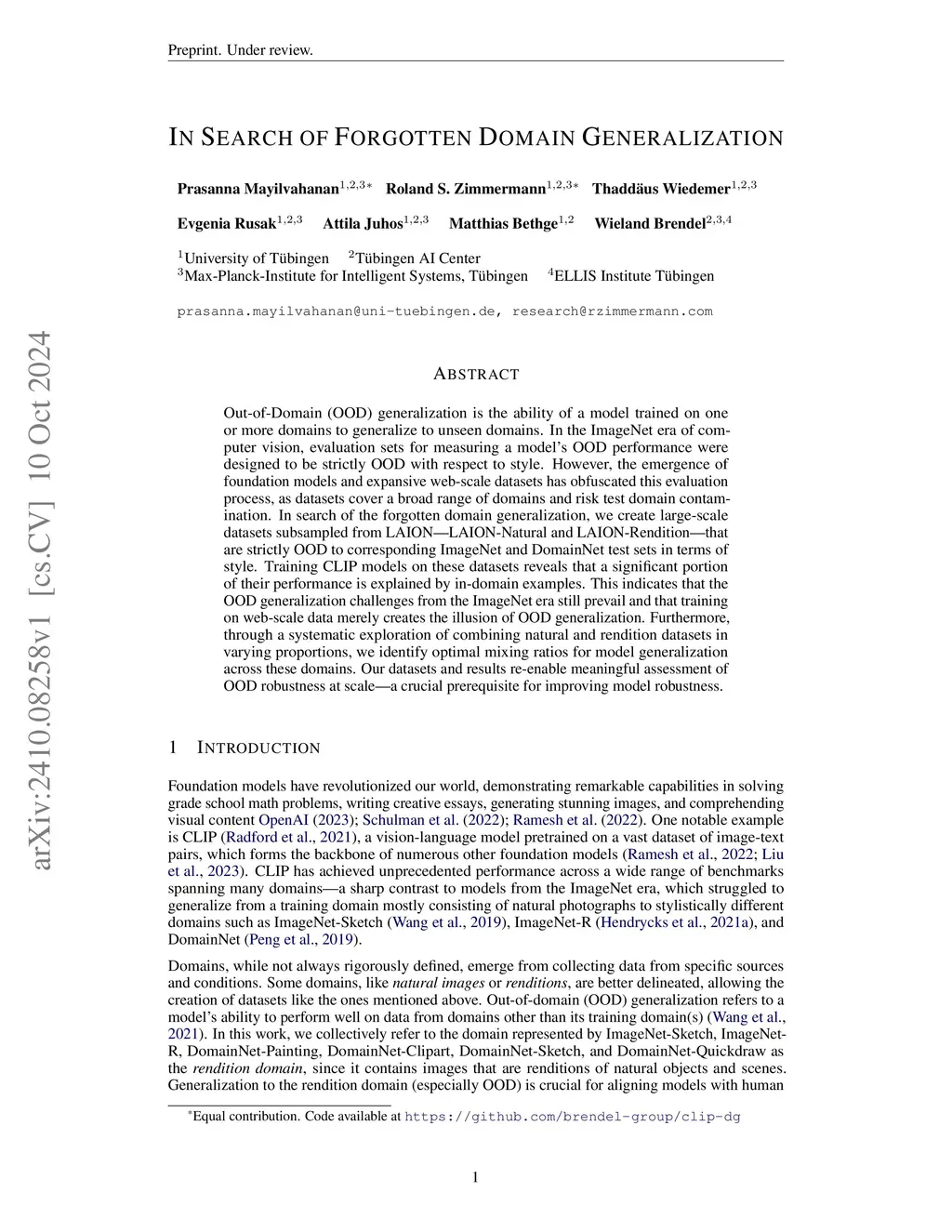 Out-of-Domain (OOD) generalization is the ability of a model trained on one or more domains to generalize to unseen domains. In the ImageNet era of computer vision, evaluation sets for measuring a model's OOD performance were designed to be strictly OOD with respect to style. However, the emergence of foundation models and expansive web-scale datasets has obfuscated this evaluation process, as datasets cover a broad range of domains and risk test domain contamination. In search of the forgotten domain generalization, we create large-scale datasets subsampled from LAION -- LAION-Natural and LAION-Rendition -- that are strictly OOD to corresponding ImageNet and DomainNet test sets in terms of style. Training CLIP models on these datasets reveals that a significant portion of their performance is explained by in-domain examples. This indicates that the OOD generalization challenges from the ImageNet era still prevail and that training on web-scale data merely creates the illusion of OOD generalization. Furthermore, through a systematic exploration of combining natural and rendition datasets in varying proportions, we identify optimal mixing ratios for model generalization across these domains. Our datasets and results re-enable meaningful assessment of OOD robustness at scale -- a crucial prerequisite for improving model robustness.