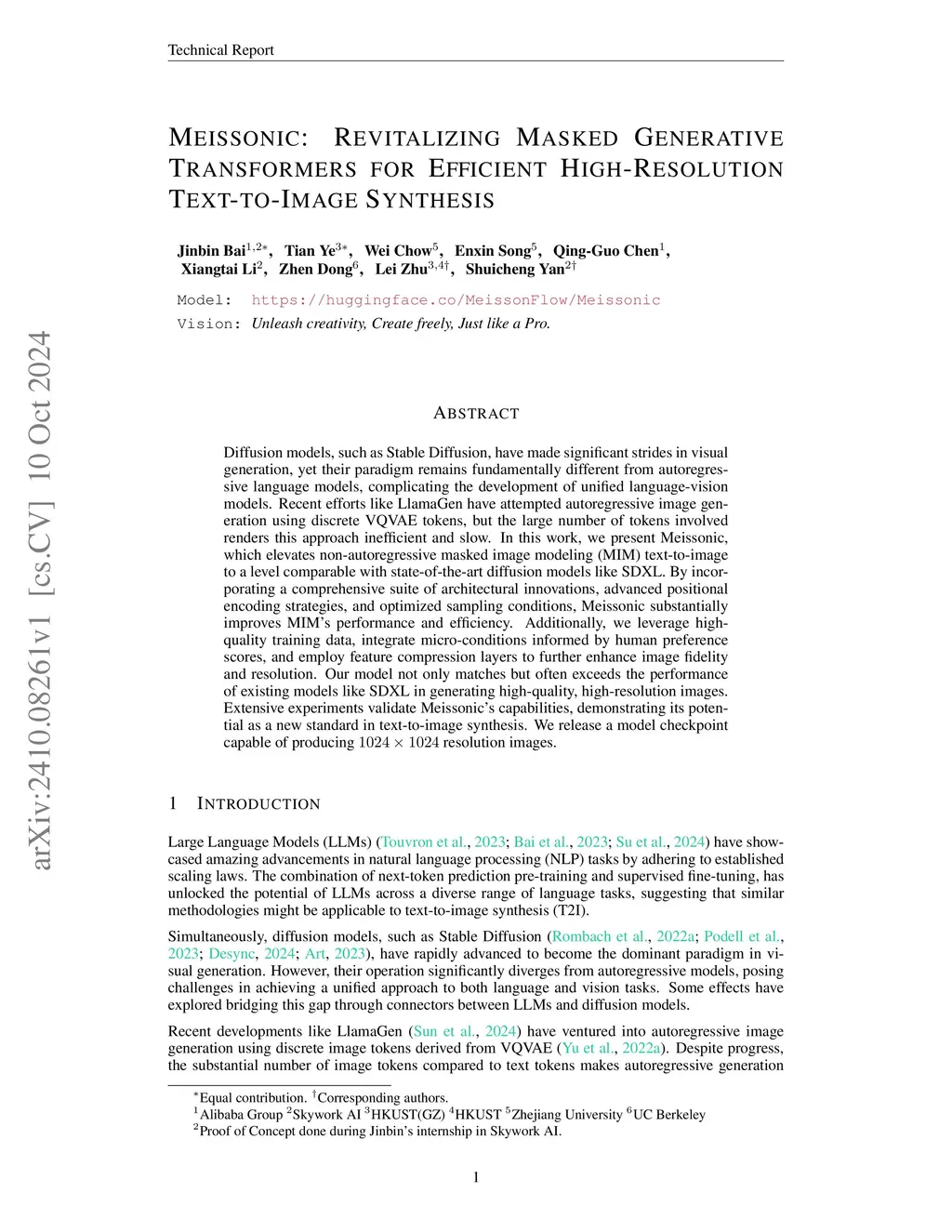 Meissonic: Revitalizing Masked Generative Transformers for Efficient High-Resolution Text-to-Image Synthesis