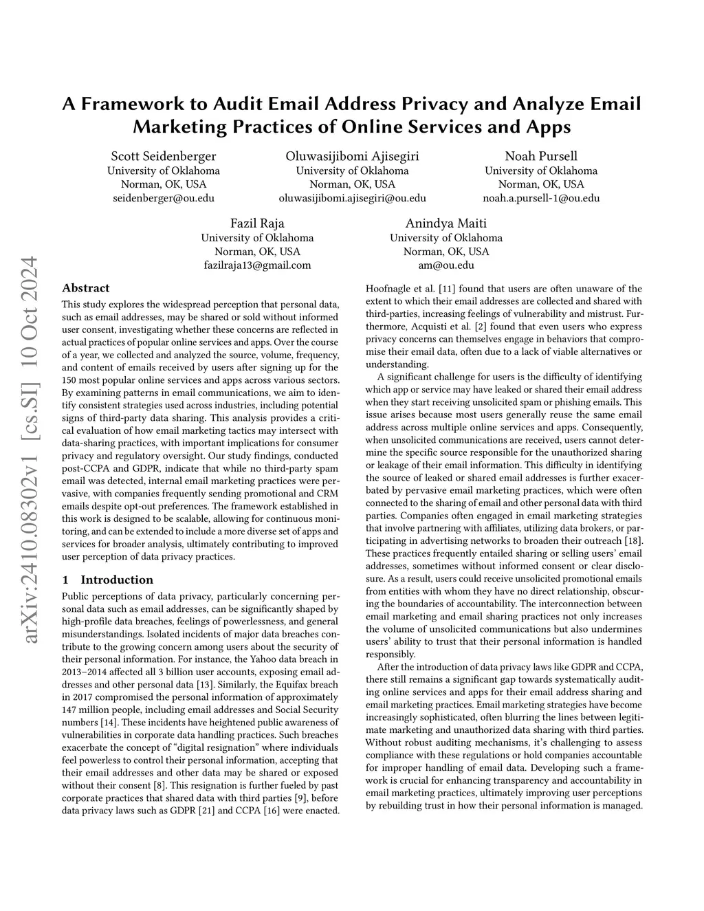 This study explores the widespread perception that personal data, such as email addresses, may be shared or sold without informed user consent, investigating whether these concerns are reflected in actual practices of popular online services and apps. Over the course of a year, we collected and analyzed the source, volume, frequency, and content of emails received by users after signing up for the 150 most popular online services and apps across various sectors. By examining patterns in email communications, we aim to identify consistent strategies used across industries, including potential signs of third-party data sharing. This analysis provides a critical evaluation of how email marketing tactics may intersect with data-sharing practices, with important implications for consumer privacy and regulatory oversight. Our study findings, conducted post-CCPA and GDPR, indicate that while no unknown third-party spam email was detected, internal and authorized third-party email marketing practices were pervasive, with companies frequently sending promotional and CRM emails despite opt-out preferences. The framework established in this work is designed to be scalable, allowing for continuous monitoring, and can be extended to include a more diverse set of apps and services for broader analysis, ultimately contributing to transparency in email address privacy practices.