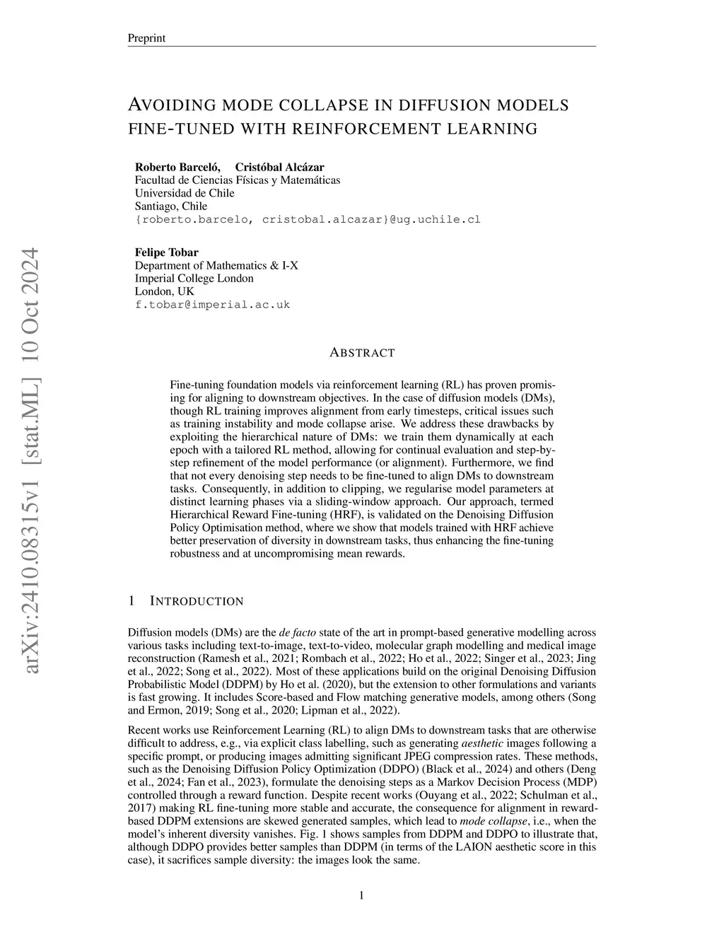 Avoiding mode collapse in diffusion models fine-tuned with reinforcement