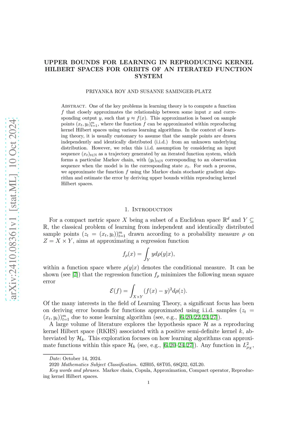 In this paper, we study a Markov chain-based stochastic gradient algorithm in general Hilbert spaces, aiming at approximating the optimal solution of a quadratic loss function. We establish probabilistic upper bounds on its convergence. We further extend these results to an online regularized learning algorithm in reproducing kernel Hilbert spaces, where the samples are drawn along a Markov chain trajectory.