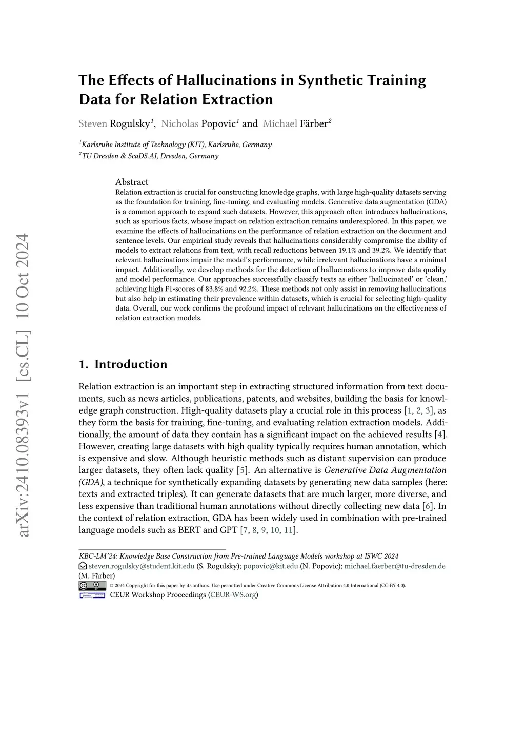 The Effects of Hallucinations in Synthetic Training Data for Relation