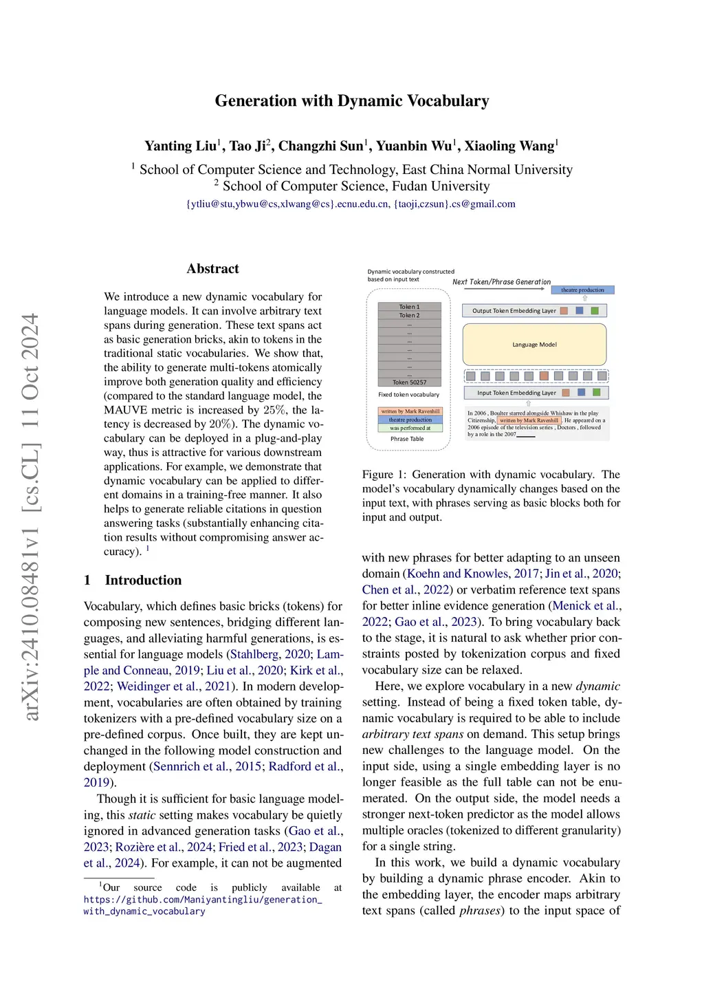Generation with Dynamic Vocabulary