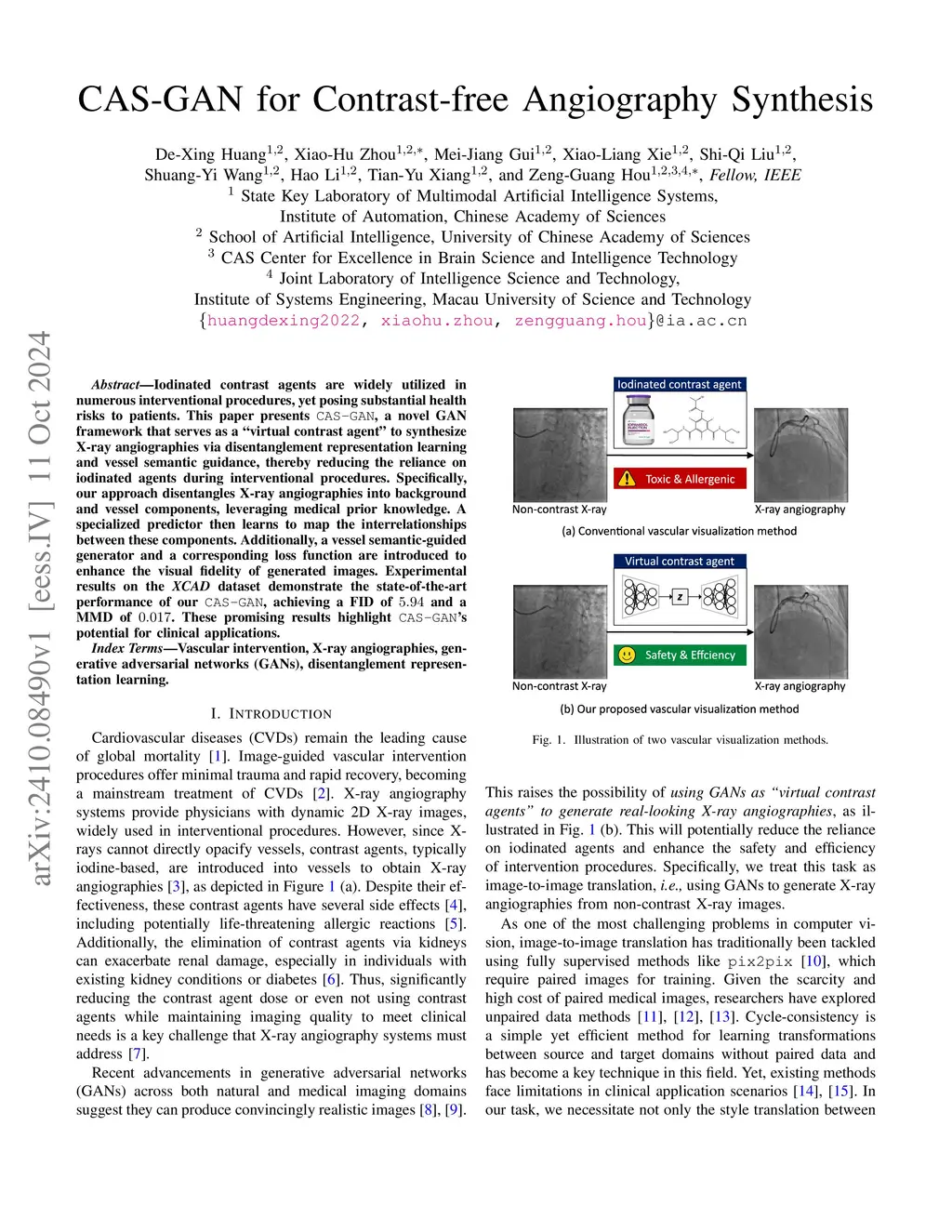 CAS-GAN for Contrast-free Angiography Synthesis