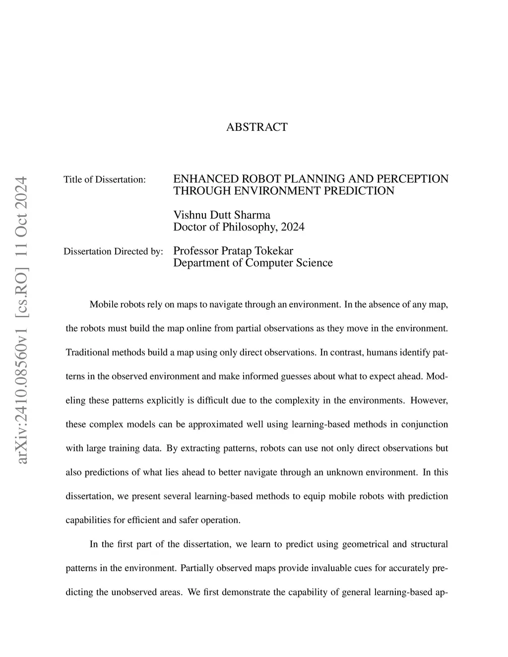 Mobile robots rely on maps to navigate through an environment. In the absence of any map, the robots must build the map online from partial observations as they move in the environment. Traditional methods build a map using only direct observations. In contrast, humans identify patterns in the observed environment and make informed guesses about what to expect ahead. Modeling these patterns explicitly is difficult due to the complexity of the environments. However, these complex models can be approximated well using learning-based methods in conjunction with large training data. By extracting patterns, robots can use direct observations and predictions of what lies ahead to better navigate an unknown environment. In this dissertation, we present several learning-based methods to equip mobile robots with prediction capabilities for efficient and safer operation. In the first part of the dissertation, we learn to predict using geometrical and structural patterns in the environment. Partially observed maps provide invaluable cues for accurately predicting the unobserved areas. We first demonstrate the capability of general learning-based approaches to model these patterns for a variety of overhead map modalities. Then we employ task-specific learning for faster navigation in indoor environments by predicting 2D occupancy in the nearby regions. This idea is further extended to 3D point cloud representation for object reconstruction. Predicting the shape of the full object from only partial views, our approach paves the way for efficient next-best-view planning. In the second part of the dissertation, we learn to predict using spatiotemporal patterns in the environment. We focus on dynamic tasks such as target tracking and coverage where we seek decentralized coordination between robots. We first show how graph neural networks can be used for more scalable and faster inference.