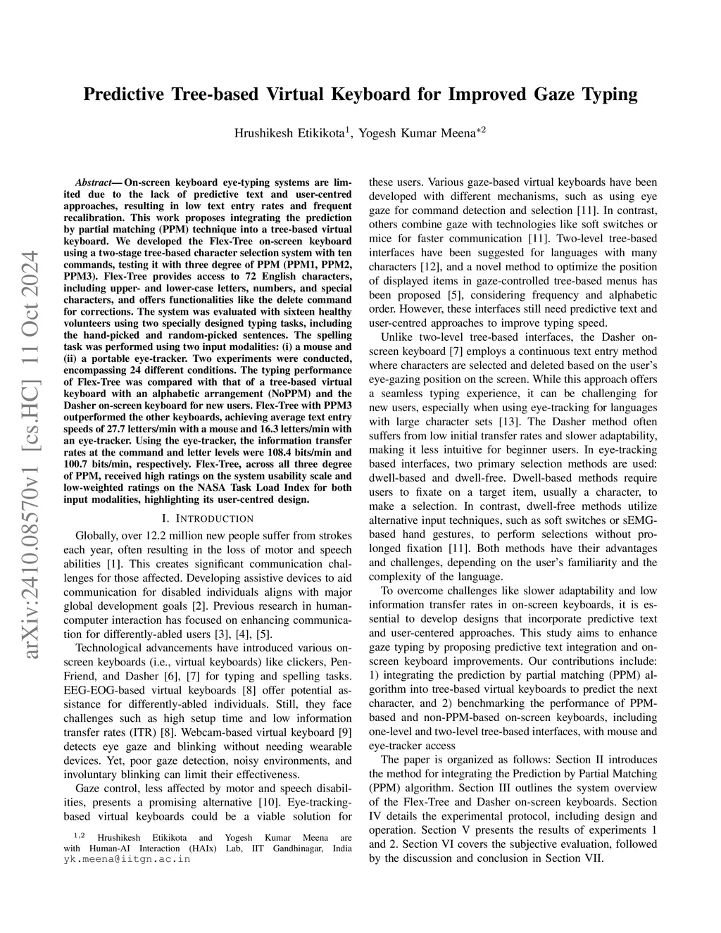 Predictive Tree-based Virtual Keyboard for Improved Gaze Typing