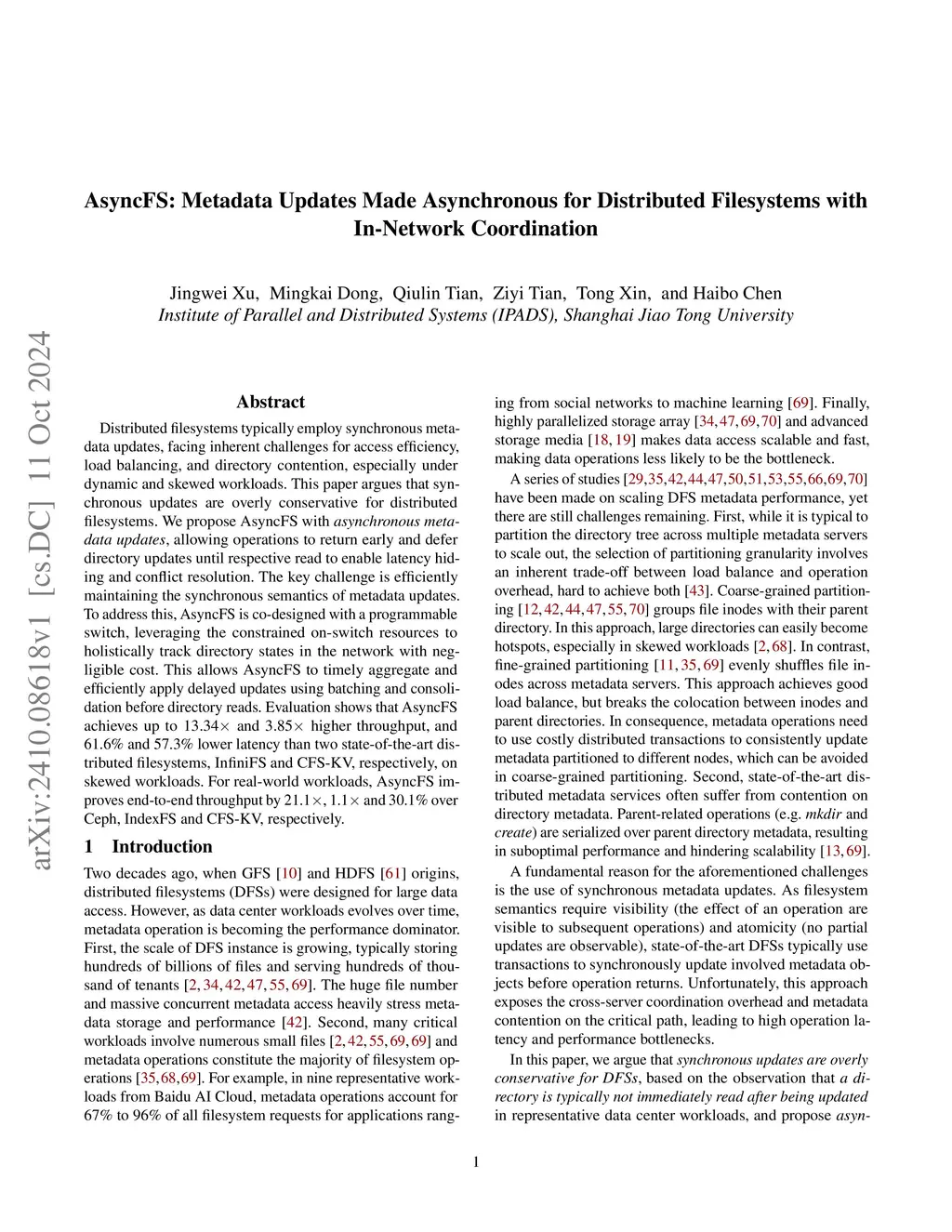AsyncFS: Metadata Updates Made Asynchronous for Distributed Filesystems