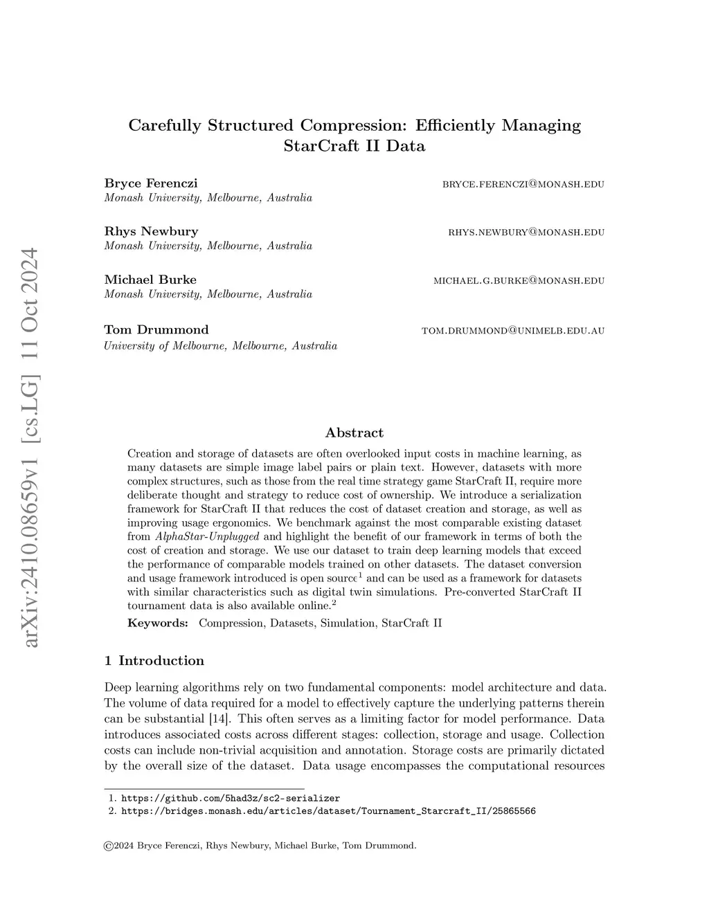 Carefully Structured Compression: Efficiently Managing StarCraft II Data