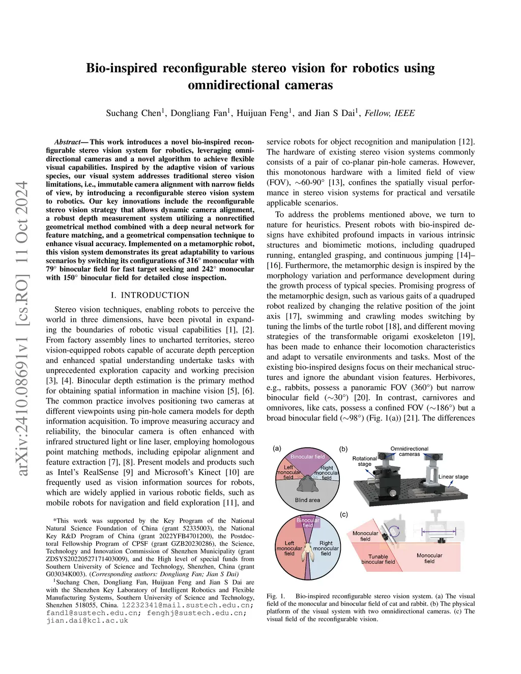 Bio-inspired reconfigurable stereo vision for robotics using omnidirectional cameras