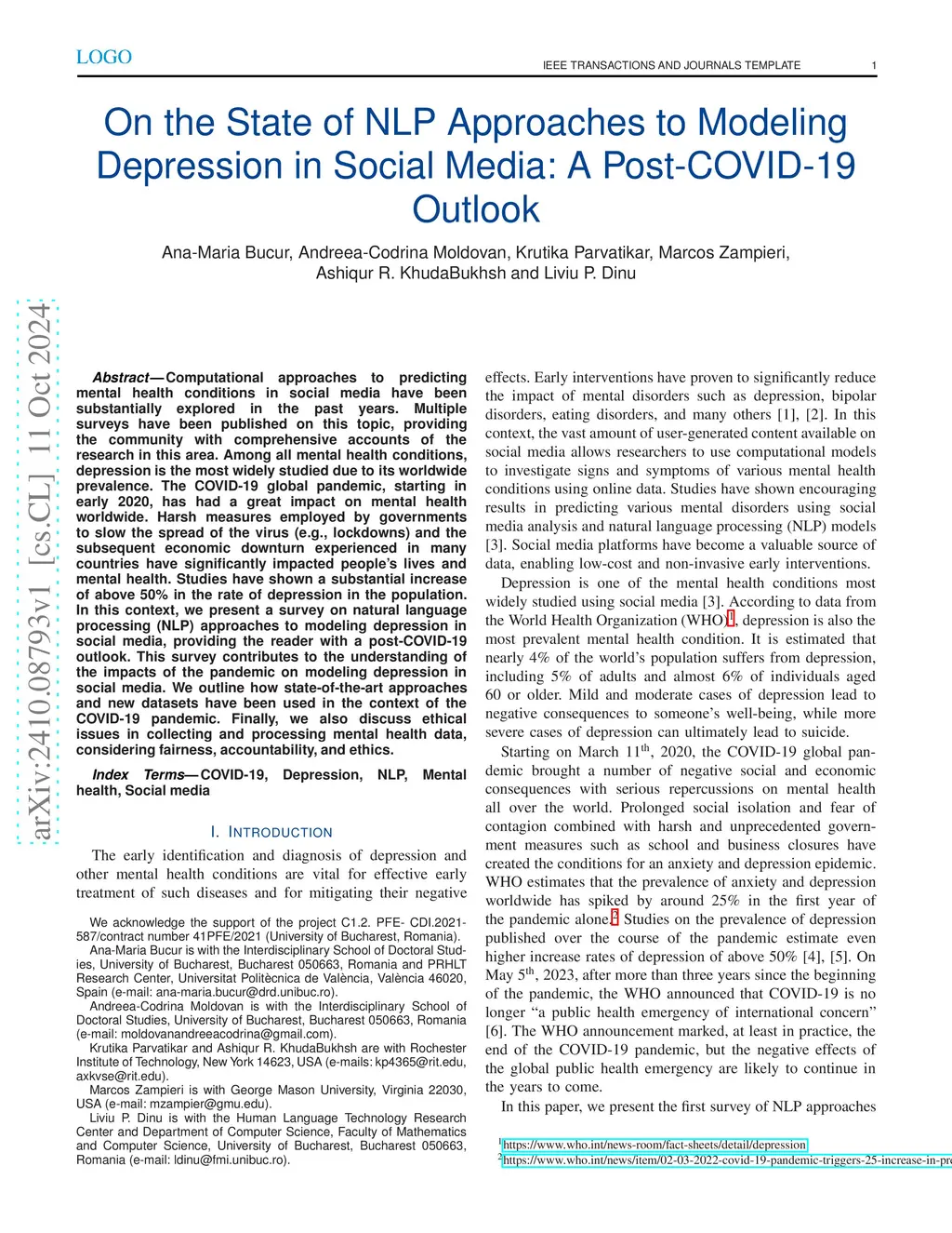 On the State of NLP Approaches to Modeling Depression in Social Media: A Post-COVID-19 Outlook