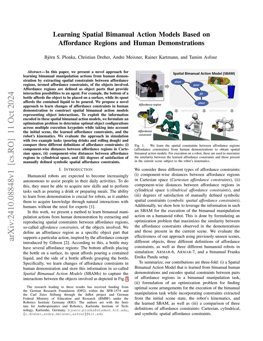 Learning Spatial Bimanual Action Models Based on Affordance Regions and