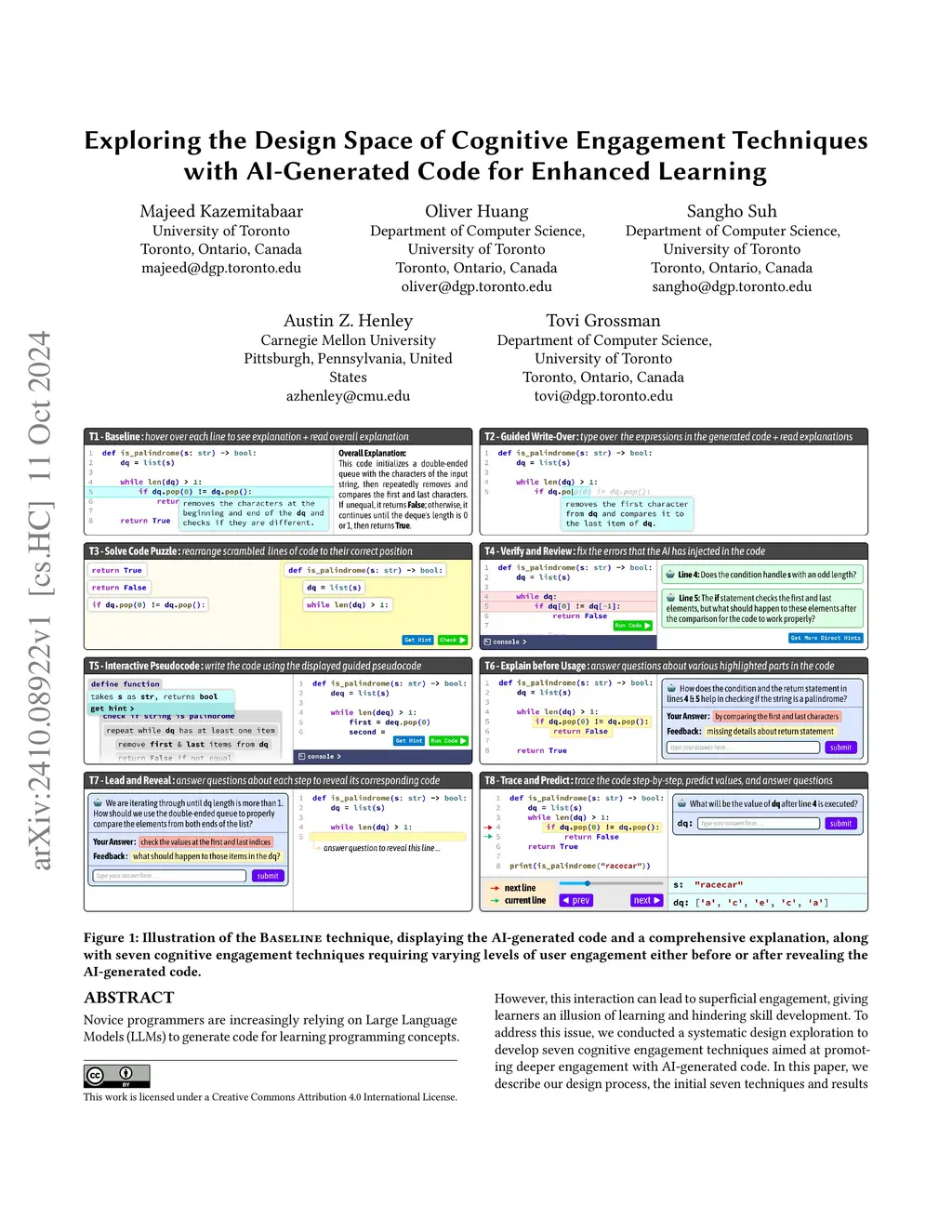 Exploring the Design Space of Cognitive Engagement Techniques with