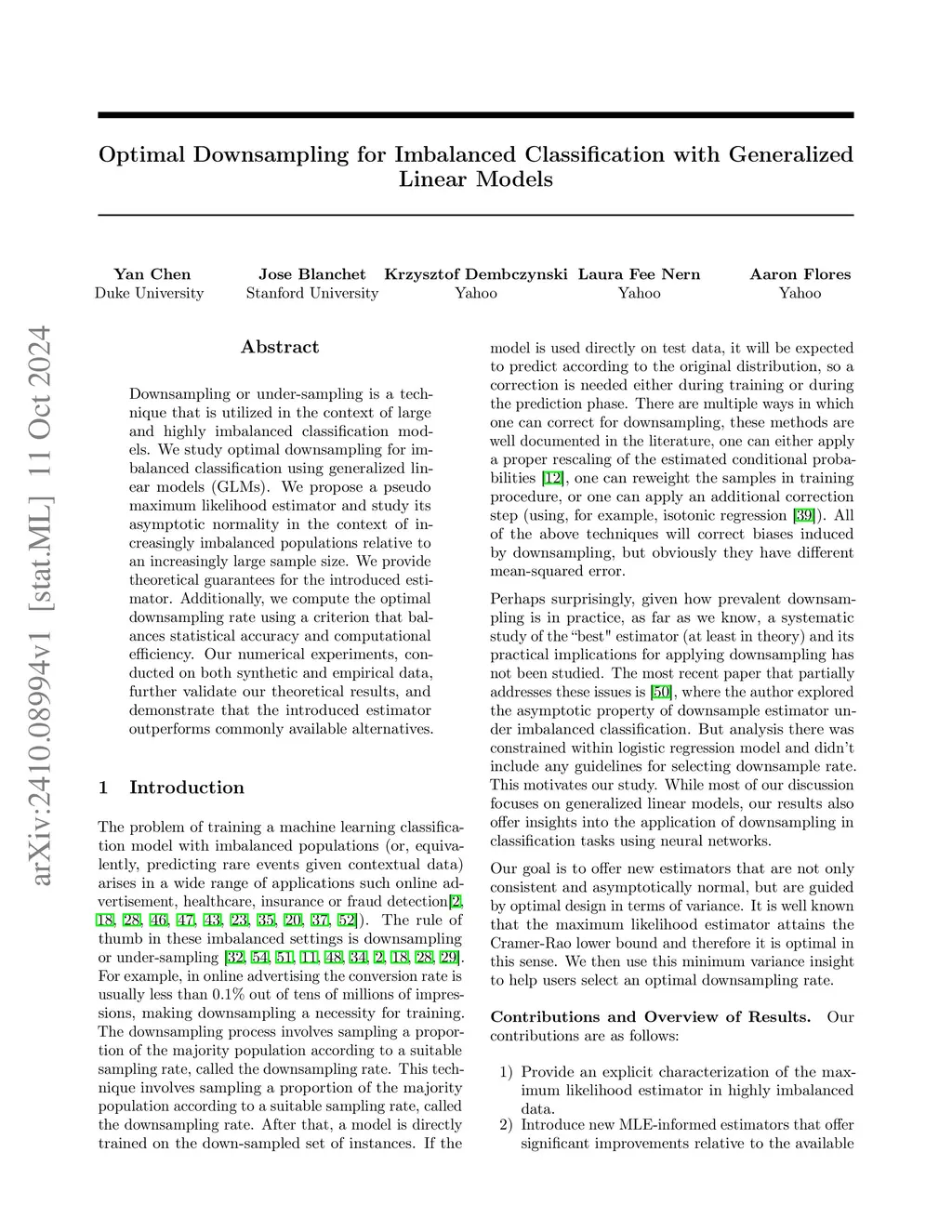 Optimal Downsampling for Imbalanced Classification with Generalized