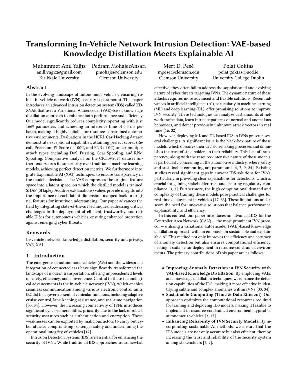 In the evolving landscape of autonomous vehicles, ensuring robust in-vehicle network (IVN) security is paramount. This paper introduces an advanced intrusion detection system (IDS) called KD-XVAE that uses a Variational Autoencoder (VAE)-based knowledge distillation approach to enhance both performance and efficiency. Our model significantly reduces complexity, operating with just 1669 parameters and achieving an inference time of 0.3 ms per batch, making it highly suitable for resource-constrained automotive environments. Evaluations in the HCRL Car-Hacking dataset demonstrate exceptional capabilities, attaining perfect scores (Recall, Precision, F1 Score of 100%, and FNR of 0%) under multiple attack types, including DoS, Fuzzing, Gear Spoofing, and RPM Spoofing. Comparative analysis on the CICIoV2024 dataset further underscores its superiority over traditional machine learning models, achieving perfect detection metrics. We furthermore integrate Explainable AI (XAI) techniques to ensure transparency in the model's decisions. The VAE compresses the original feature space into a latent space, on which the distilled model is trained. SHAP(SHapley Additive exPlanations) values provide insights into the importance of each latent dimension, mapped back to original features for intuitive understanding. Our paper advances the field by integrating state-of-the-art techniques, addressing critical challenges in the deployment of efficient, trustworthy, and reliable IDSes for autonomous vehicles, ensuring enhanced protection against emerging cyber threats.