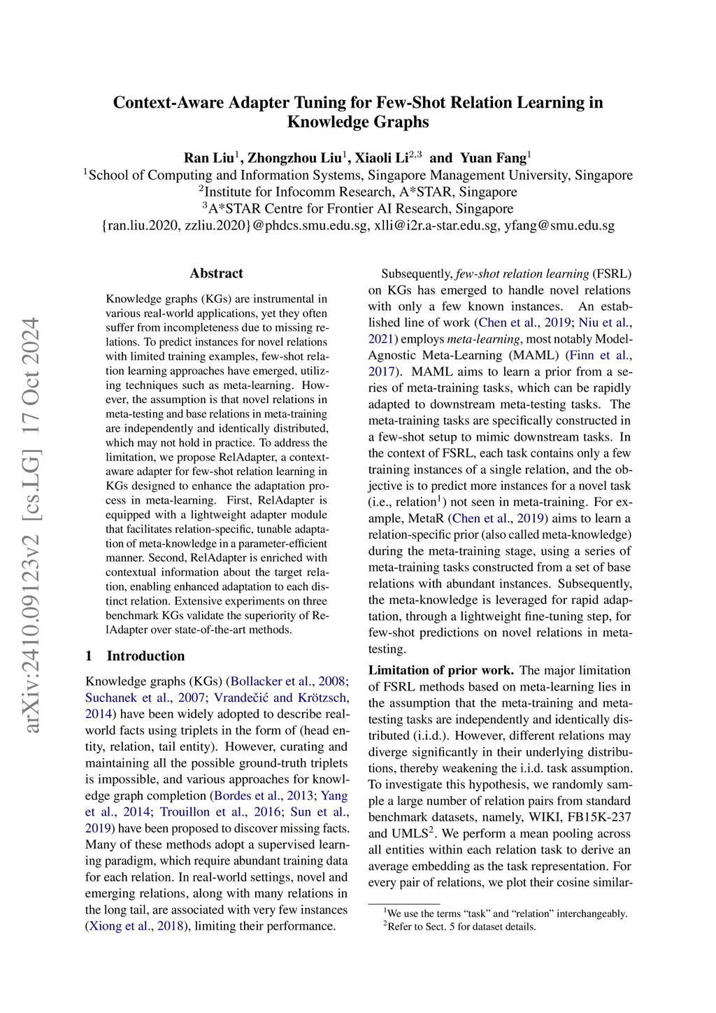 Context-Aware Adapter Tuning for Few-Shot Relation Learning in Knowledge