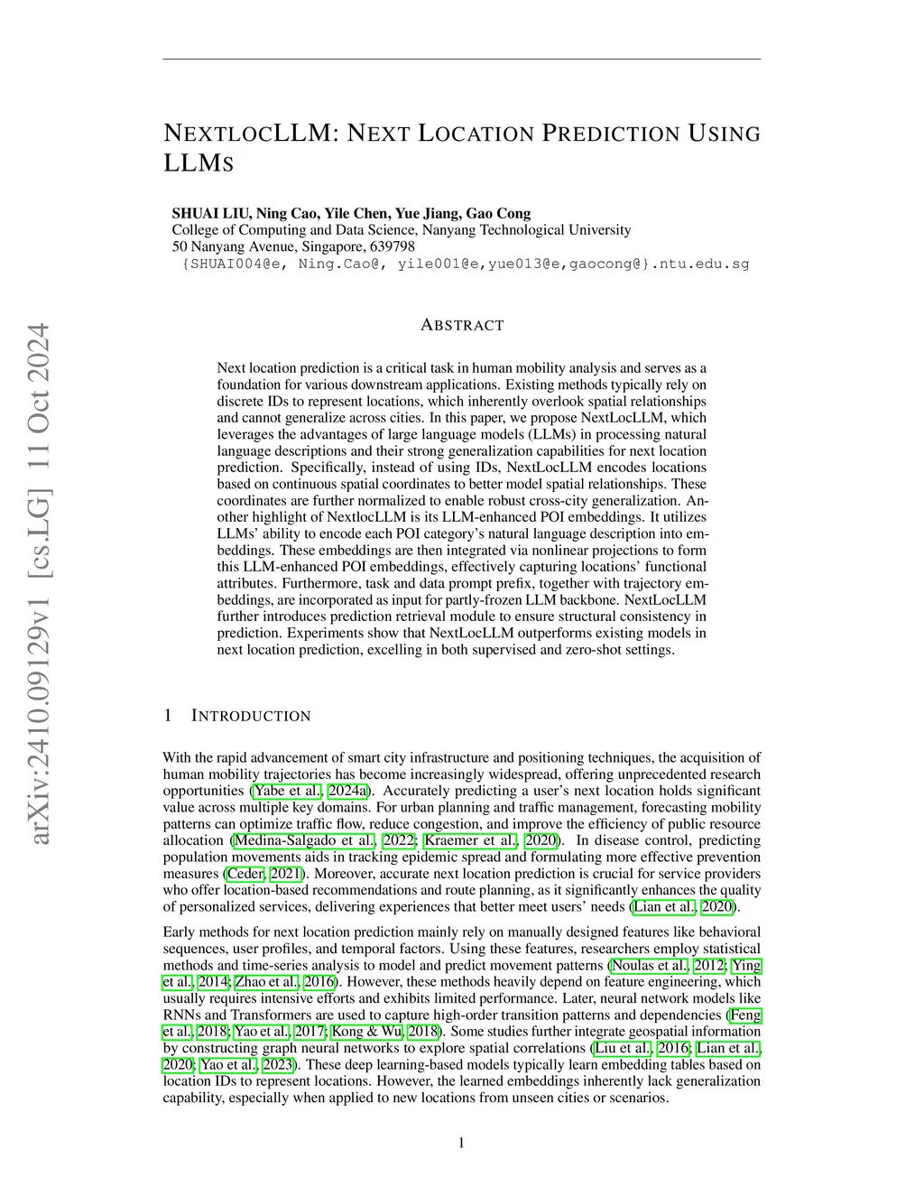 Next location prediction is a critical task in human mobilitythis http URLmethods typically formulate it as a classification task based on discrete location IDs, which hinders spatial continuity modeling and limits generalization to new cities. In this paper, we propose NextLocLLM, a novel framework that reformulates next-location prediction as coordinate regression and integrates LLMs for both location semantics encoding and coordinate-level prediction. To model location functional semantics, it constructs LLM-enhanced POI embeddings by leveraging language understanding capabilities of LLMs to extract functional semantics from textual descriptions of POI categories. These POI embeddings are combined with spatiotemporal trajectory representation and fed into the same LLM, enabling unified semantic and predictive modeling. A lightweight regression head generates coordinate outputs, which are mapped to top-k candidate locations via post-prediction retrieval module, ensuring structured outputs. Experiments across diverse cities show that NextLocLLM outperforms existing baselines in both supervised and zero-shot settings. Code is available at:this https URL.