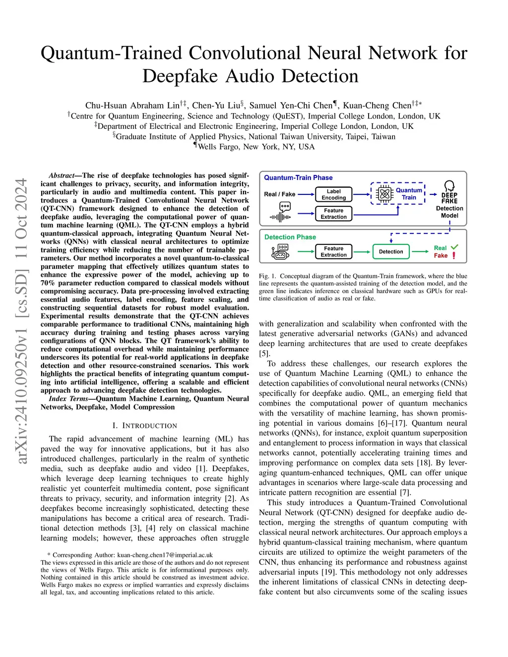 Quantum-Trained Convolutional Neural Network for Deepfake Audio