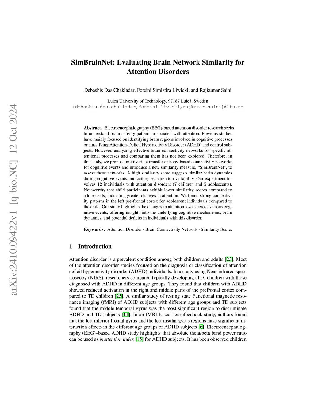 SimBrainNet: Evaluating Brain Network Similarity for Attention Disorders