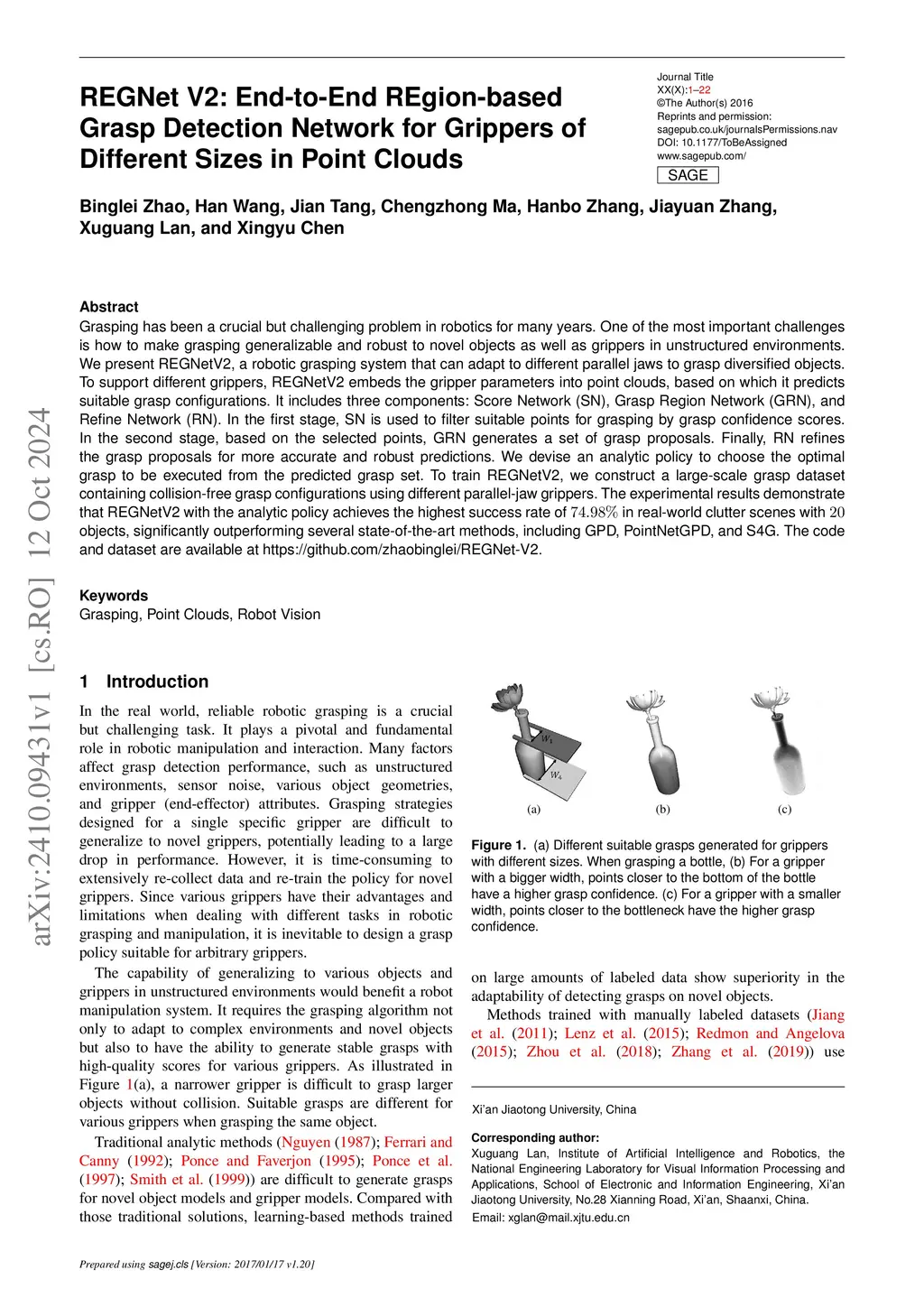 Grasping has been a crucial but challenging problem in robotics for many years. One of the most important challenges is how to make grasping generalizable and robust to novel objects as well as grippers in unstructured environments. We present \regnet, a robotic grasping system that can adapt to different parallel jaws to grasp diversified objects. To support different grippers, \regnet embeds the gripper parameters into point clouds, based on which it predicts suitable grasp configurations. It includes three components: Score Network (SN), Grasp Region Network (GRN), and Refine Network (RN). In the first stage, SN is used to filter suitable points for grasping by grasp confidence scores. In the second stage, based on the selected points, GRN generates a set of grasp proposals. Finally, RN refines the grasp proposals for more accurate and robust predictions. We devise an analytic policy to choose the optimal grasp to be executed from the predicted grasp set. To train \regnet, we construct a large-scale grasp dataset containing collision-free grasp configurations using different parallel-jaw grippers. The experimental results demonstrate that \regnet with the analytic policy achieves the highest success rate of in real-world clutter scenes with objects, significantly outperforming several state-of-the-art methods, including GPD, PointNetGPD, and S4G. The code and dataset are available at https://github.com/zhaobinglei/REGNet-V2.