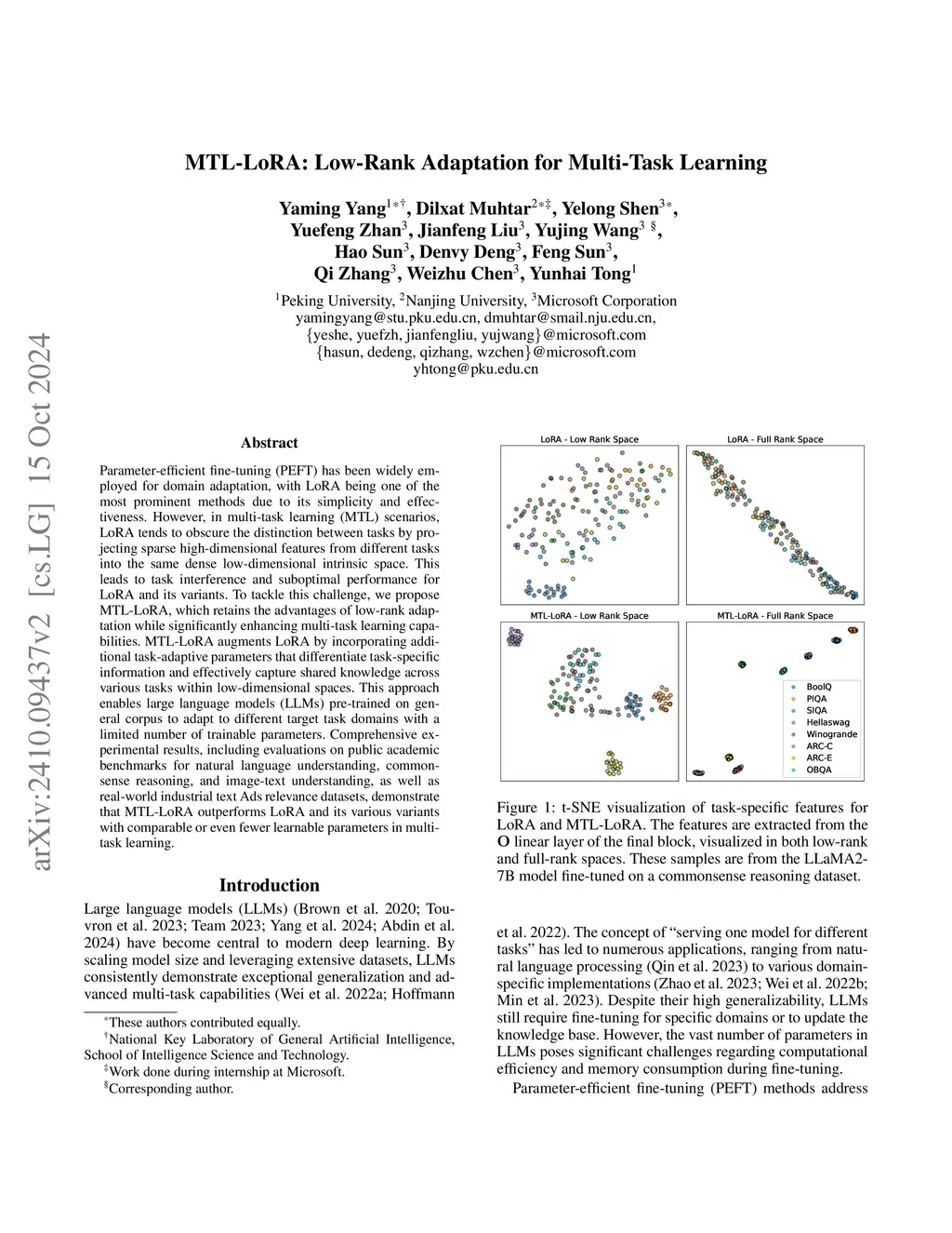 MTL-LoRA: Low-Rank Adaptation for Multi-Task Learning
