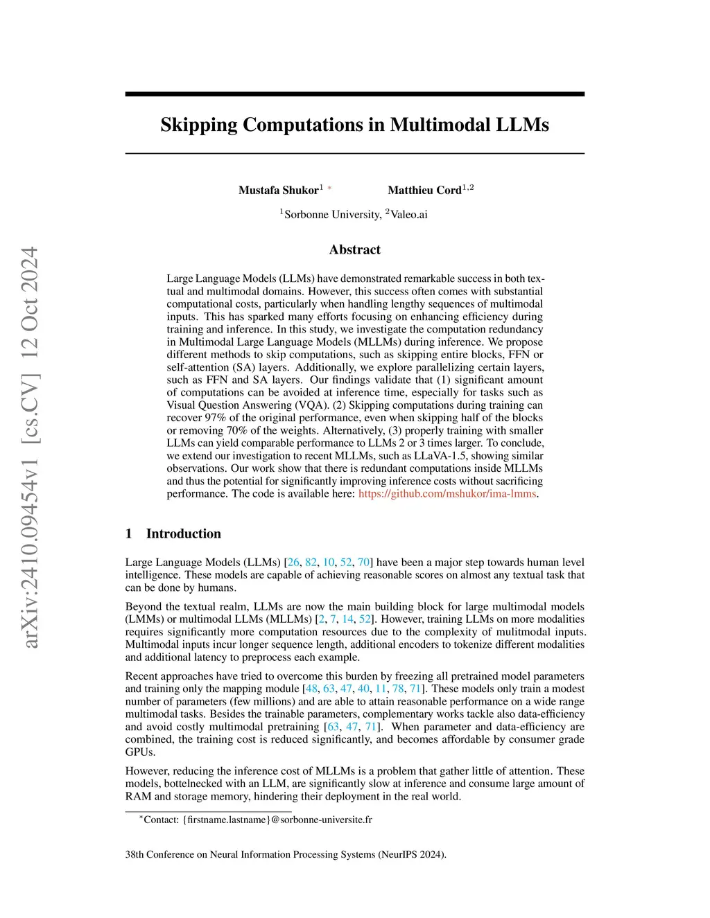 Skipping Computations in Multimodal LLMs