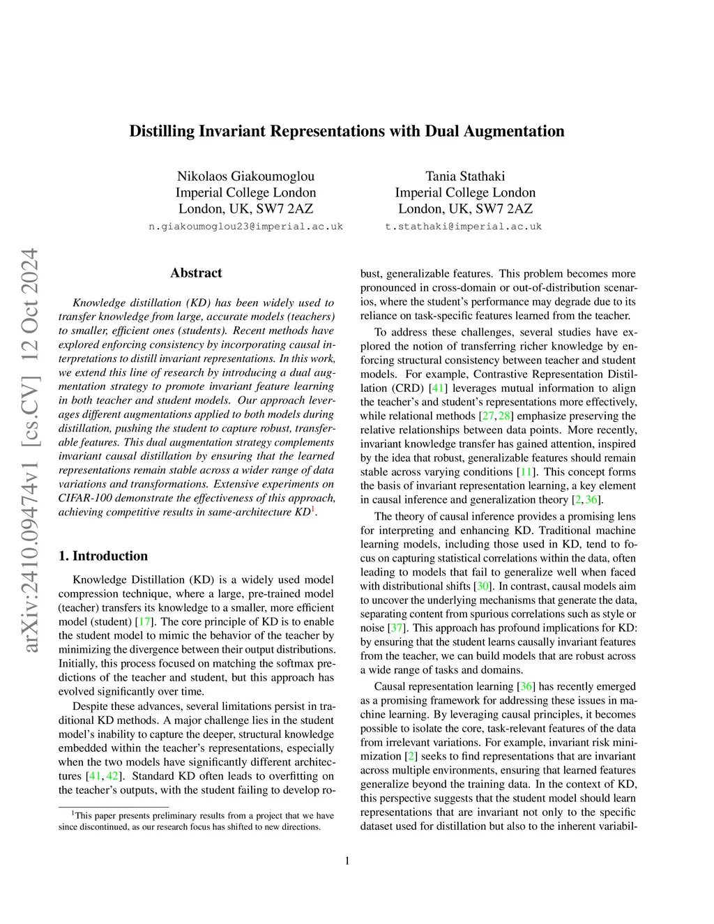 Distilling Invariant Representations with Dual Augmentation
