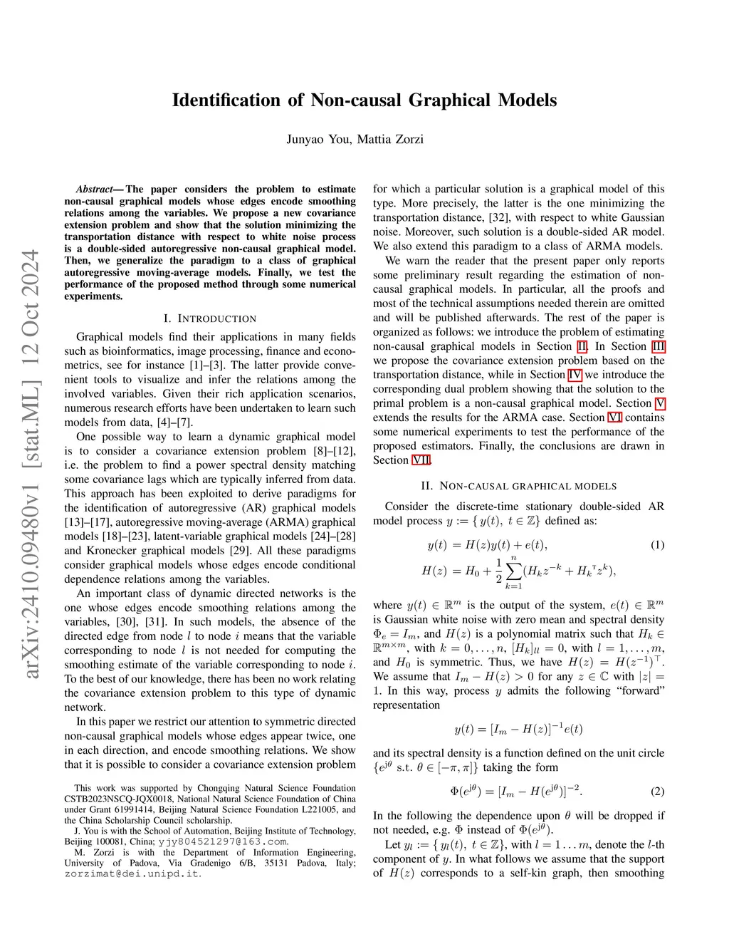 The paper considers the problem to estimate non-causal graphical models whose edges encode smoothing relations among the variables. We propose a new covariance extension problem and show that the solution minimizing the transportation distance with respect to white noise process is a double-sided autoregressive non-causal graphical model. Then, we generalize the paradigm to a class of graphical autoregressive moving-average models. Finally, we test the performance of the proposed method through some numerical experiments.