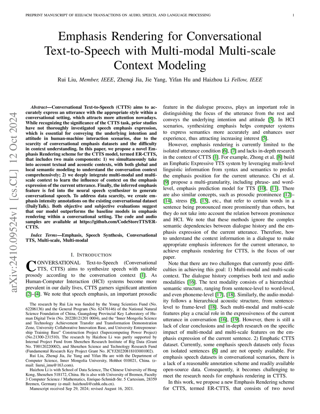 Emphasis Rendering for Conversational Text-to-Speech with Multi-modal