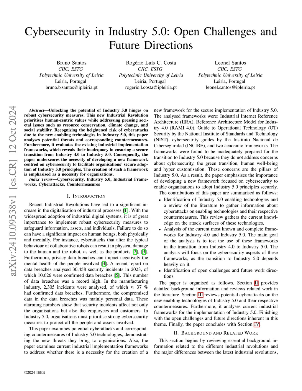 Unlocking the potential of Industry 5.0 hinges on robust cybersecurity measures. This new Industrial Revolution prioritises human-centric values while addressing pressing societal issues such as resource conservation, climate change, and social stability. Recognising the heightened risk of cyberattacks due to the new enabling technologies in Industry 5.0, this paper analyses potential threats and corresponding countermeasures. Furthermore, it evaluates the existing industrial implementation frameworks, which reveals their inadequacy in ensuring a secure transition from Industry 4.0 to Industry 5.0. Consequently, the paper underscores the necessity of developing a new framework centred on cybersecurity to facilitate organisations' secure adoption of Industry 5.0 principles. The creation of such a framework is emphasised as a necessity for organisations.