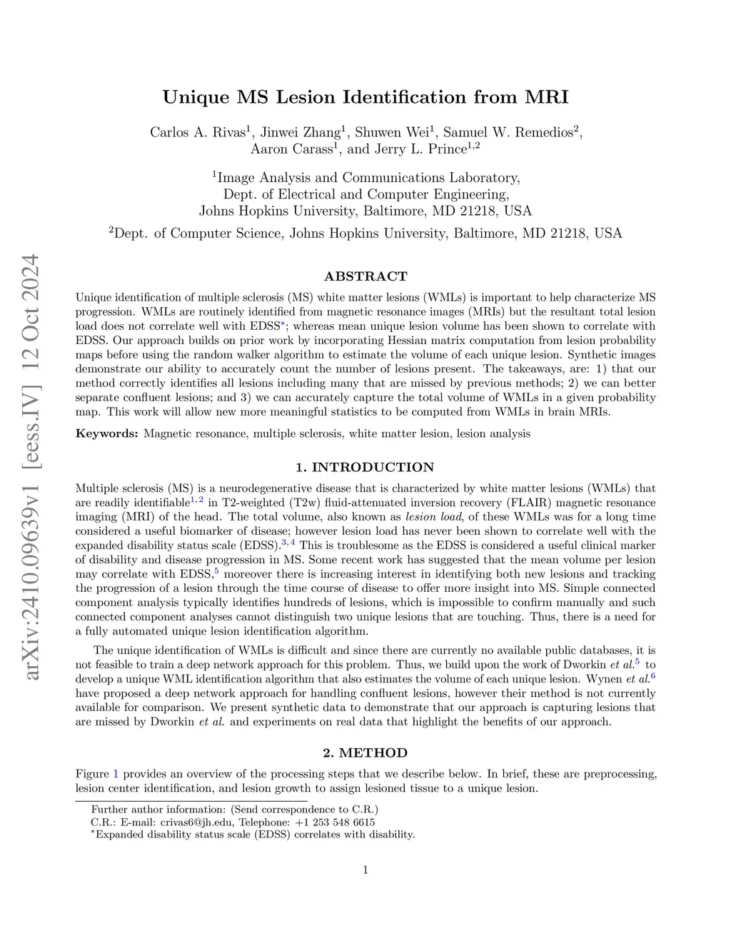 Unique MS Lesion Identification from MRI