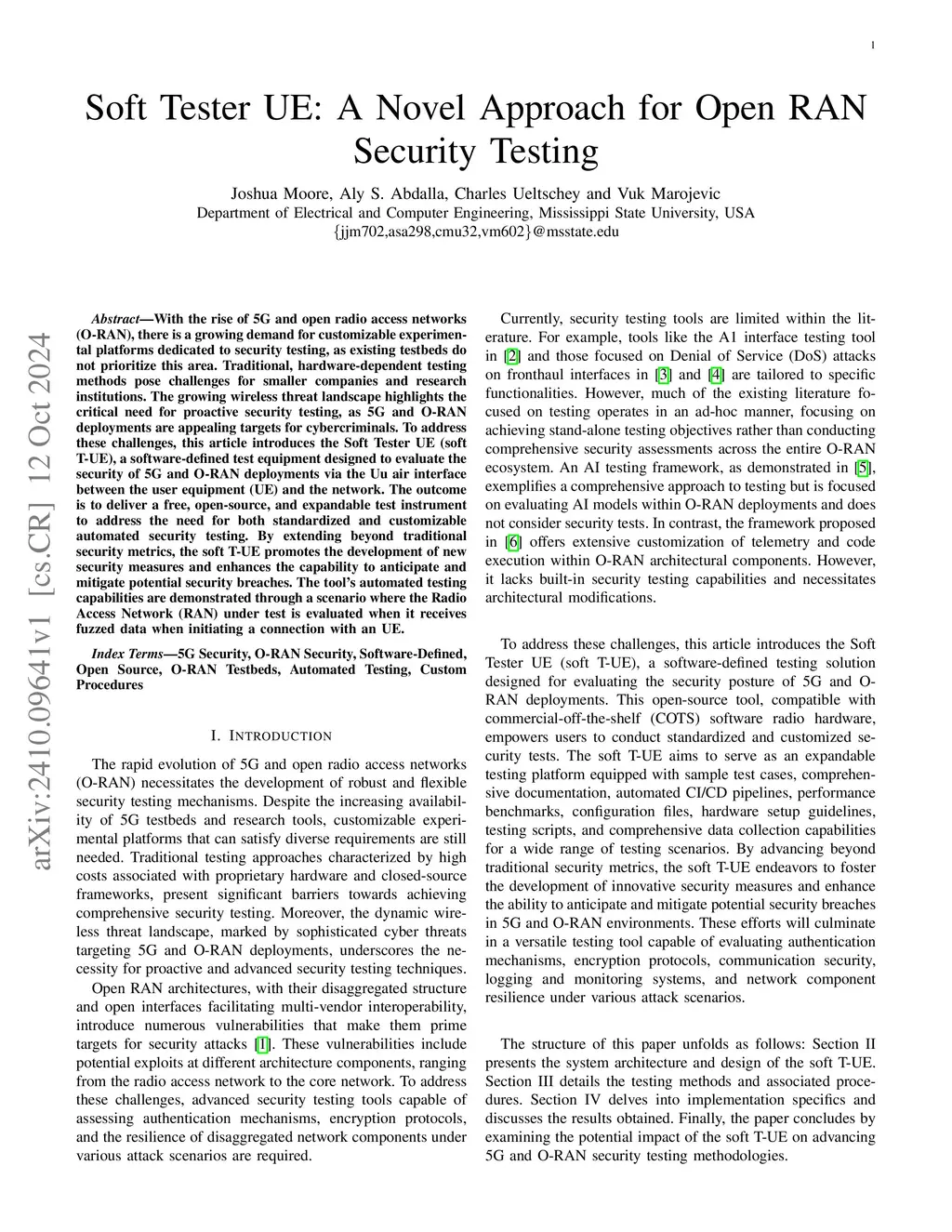 With the rise of 5G and open radio access networks (O-RAN), there is a growing demand for customizable experimental platforms dedicated to security testing, as existing testbeds do not prioritize this area. Traditional, hardware-dependent testing methods pose challenges for smaller companies and research institutions. The growing wireless threat landscape highlights the critical need for proactive security testing, as 5G and O-RAN deployments are appealing targets for cybercriminals. To address these challenges, this article introduces the Soft Tester UE (soft T-UE), a software-defined test equipment designed to evaluate the security of 5G and O-RAN deployments via the Uu air interface between the user equipment (UE) and the network. The outcome is to deliver a free, open-source, and expandable test instrument to address the need for both standardized and customizable automated security testing. By extending beyond traditional security metrics, the soft T-UE promotes the development of new security measures and enhances the capability to anticipate and mitigate potential security breaches. The tool's automated testing capabilities are demonstrated through a scenario where the Radio Access Network (RAN) under test is evaluated when it receives fuzzed data when initiating a connection with an UE.