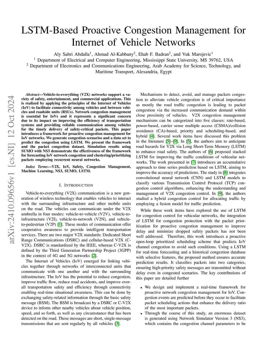 LSTM-Based Proactive Congestion Management for Internet of Vehicle