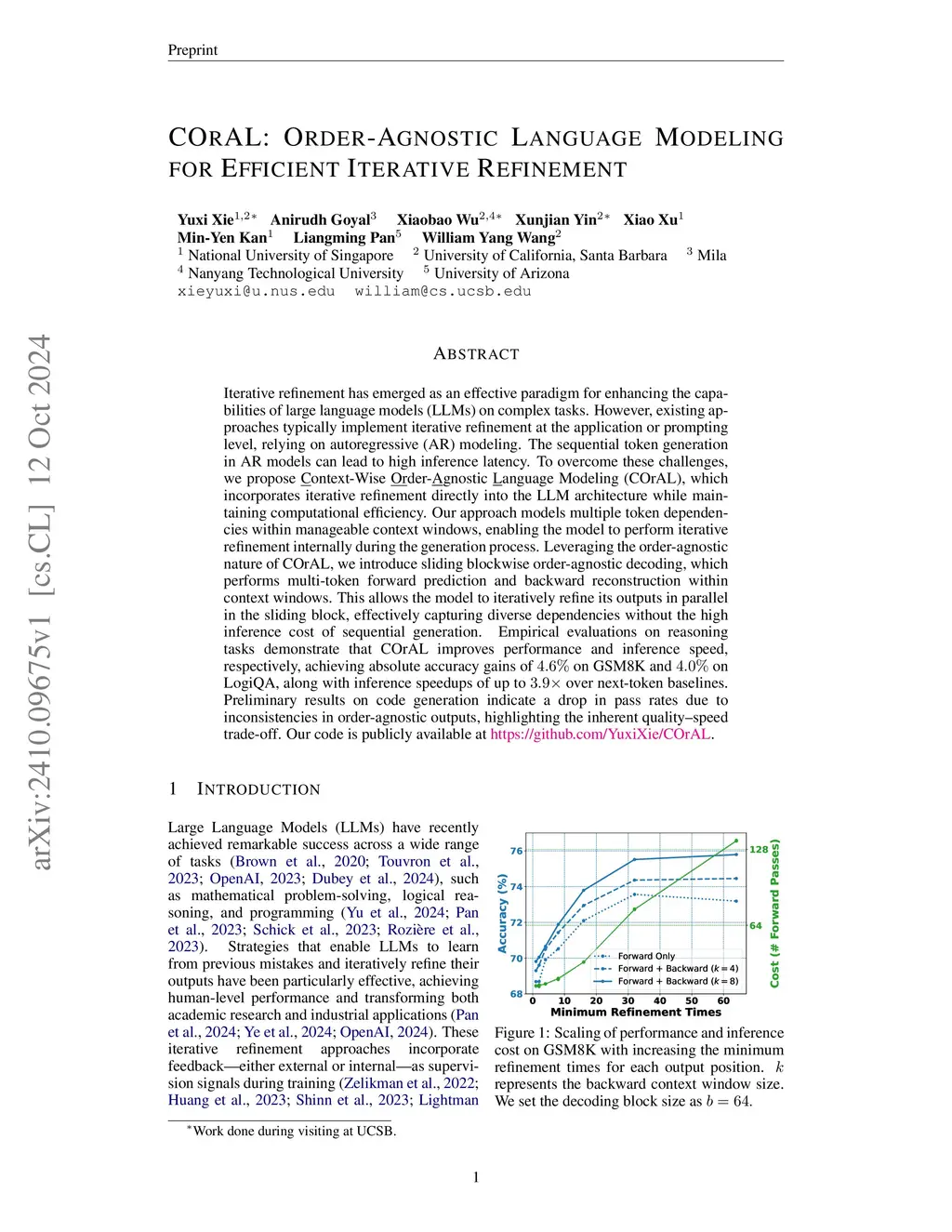 COrAL: Order-Agnostic Language Modeling for Efficient Iterative