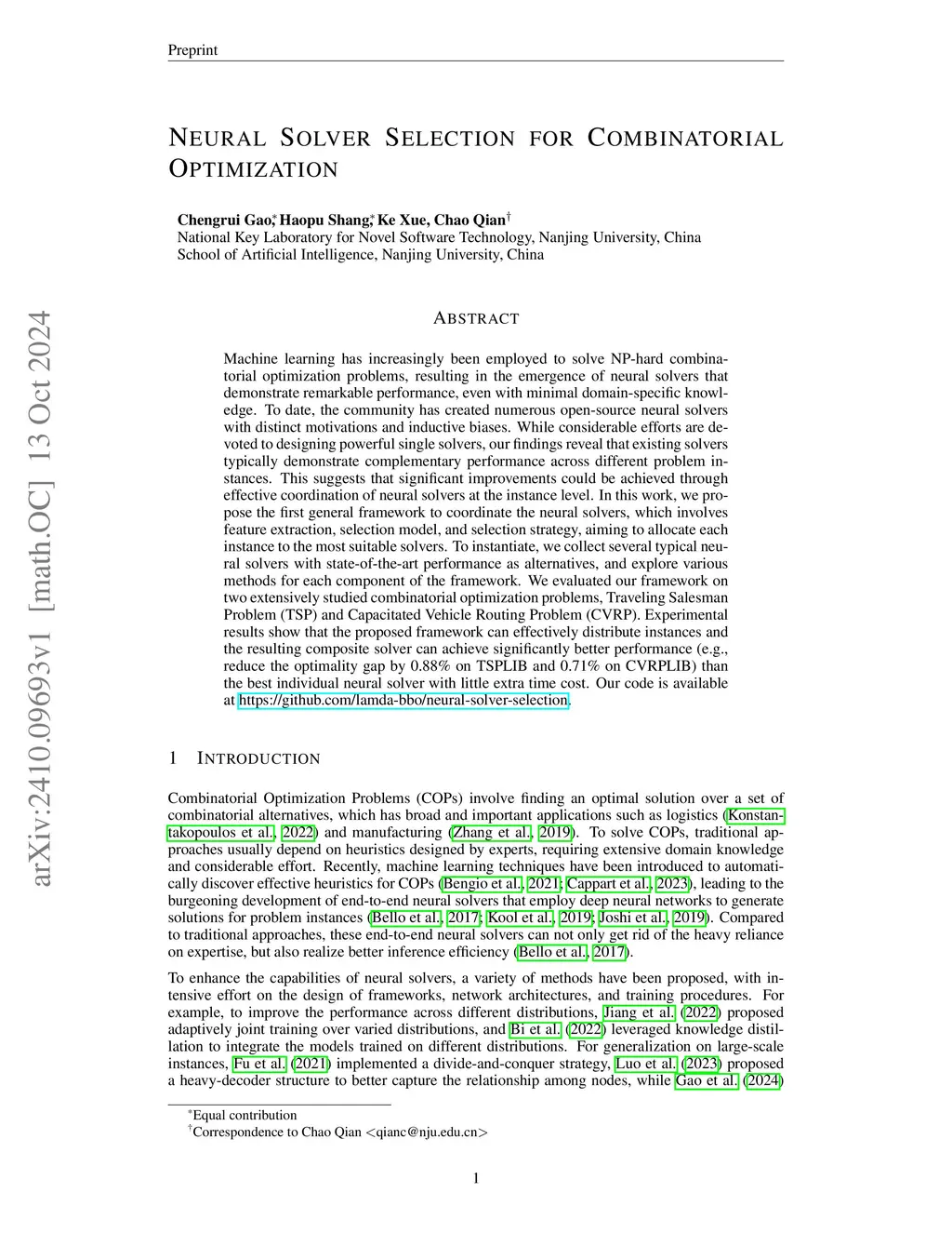 Neural Solver Selection for Combinatorial Optimization