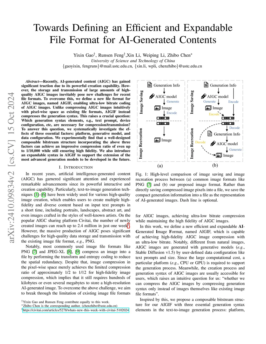 Recently, AI-generated content (AIGC) has gained significant traction due to its powerful creation capability. However, the storage and transmission of large amounts of high-quality AIGC images inevitably pose new challenges for recent file formats. To overcome this, we define a new file format for AIGC images, named AIGIF, enabling ultra-low bitrate coding of AIGC images. Unlike compressing AIGC images intuitively with pixel-wise space as existing file formats, AIGIF instead compresses the generation syntax. This raises a crucial question: Which generation syntax elements, e.g., text prompt, device configuration, etc, are necessary for compression/transmission? To answer this question, we systematically investigate the effects of three essential factors: platform, generative model, and data configuration. We experimentally find that a well-designed composable bitstream structure incorporating the above three factors can achieve an impressive compression ratio of even up to 1/10,000 while still ensuring high fidelity. We also introduce an expandable syntax in AIGIF to support the extension of the most advanced generation models to be developed in the future.