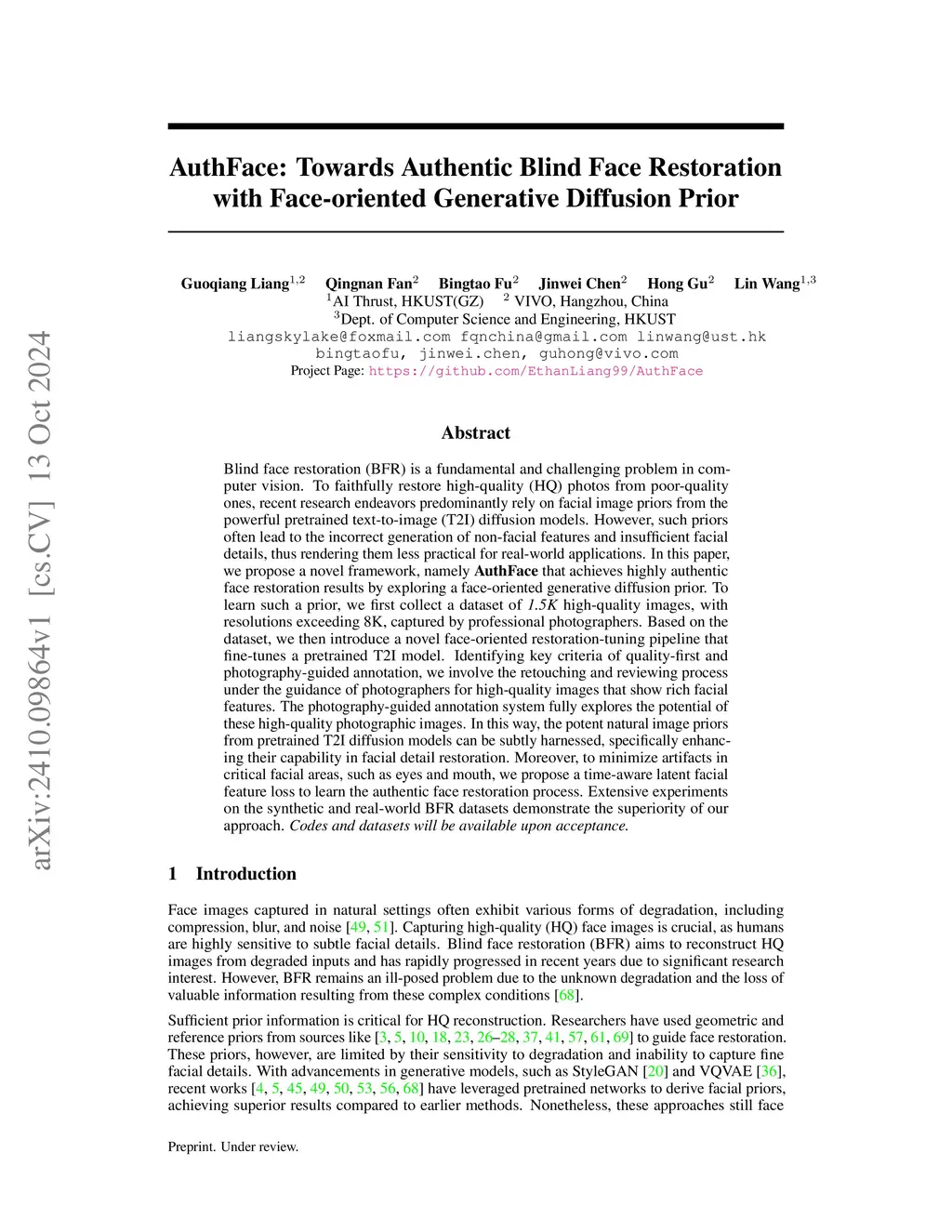 Blind face restoration (BFR) is a fundamental and challenging problem in computer vision. To faithfully restore high-quality (HQ) photos from poor-quality ones, recent research endeavors predominantly rely on facial image priors from the powerful pretrained text-to-image (T2I) diffusion models. However, such priors often lead to the incorrect generation of non-facial features and insufficient facial details, thus rendering them less practical for real-world applications. In this paper, we propose a novel framework, namely AuthFace that achieves highly authentic face restoration results by exploring a face-oriented generative diffusion prior. To learn such a prior, we first collect a dataset of 1.5K high-quality images, with resolutions exceeding 8K, captured by professional photographers. Based on the dataset, we then introduce a novel face-oriented restoration-tuning pipeline that fine-tunes a pretrained T2I model. Identifying key criteria of quality-first and photography-guided annotation, we involve the retouching and reviewing process under the guidance of photographers for high-quality images that show rich facial features. The photography-guided annotation system fully explores the potential of these high-quality photographic images. In this way, the potent natural image priors from pretrained T2I diffusion models can be subtly harnessed, specifically enhancing their capability in facial detail restoration. Moreover, to minimize artifacts in critical facial areas, such as eyes and mouth, we propose a time-aware latent facial feature loss to learn the authentic face restoration process. Extensive experiments on the synthetic and real-world BFR datasets demonstrate the superiority of our approach.