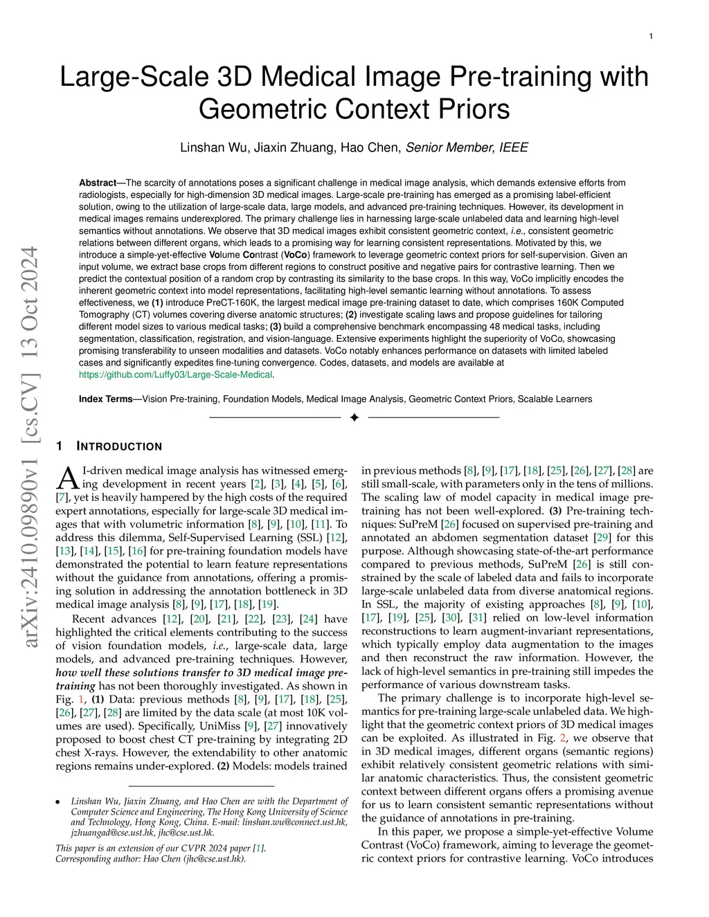 Large-Scale 3D Medical Image Pre-training with Geometric Context Priors