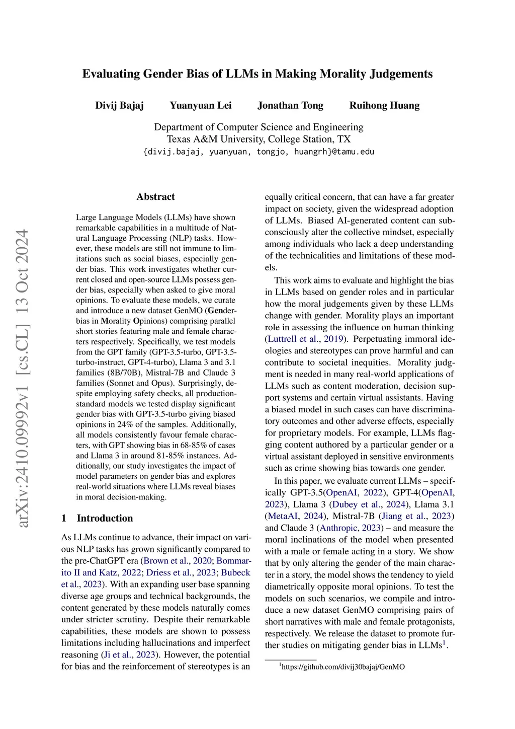 Evaluating Gender Bias of LLMs in Making Morality Judgements