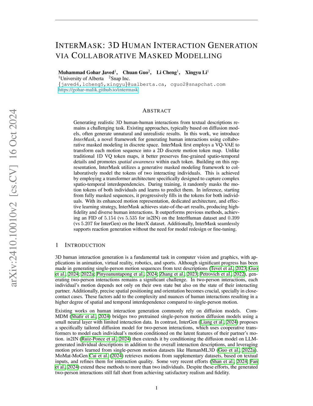 InterMask: 3D Human Interaction Generation via Collaborative Masked Modeling