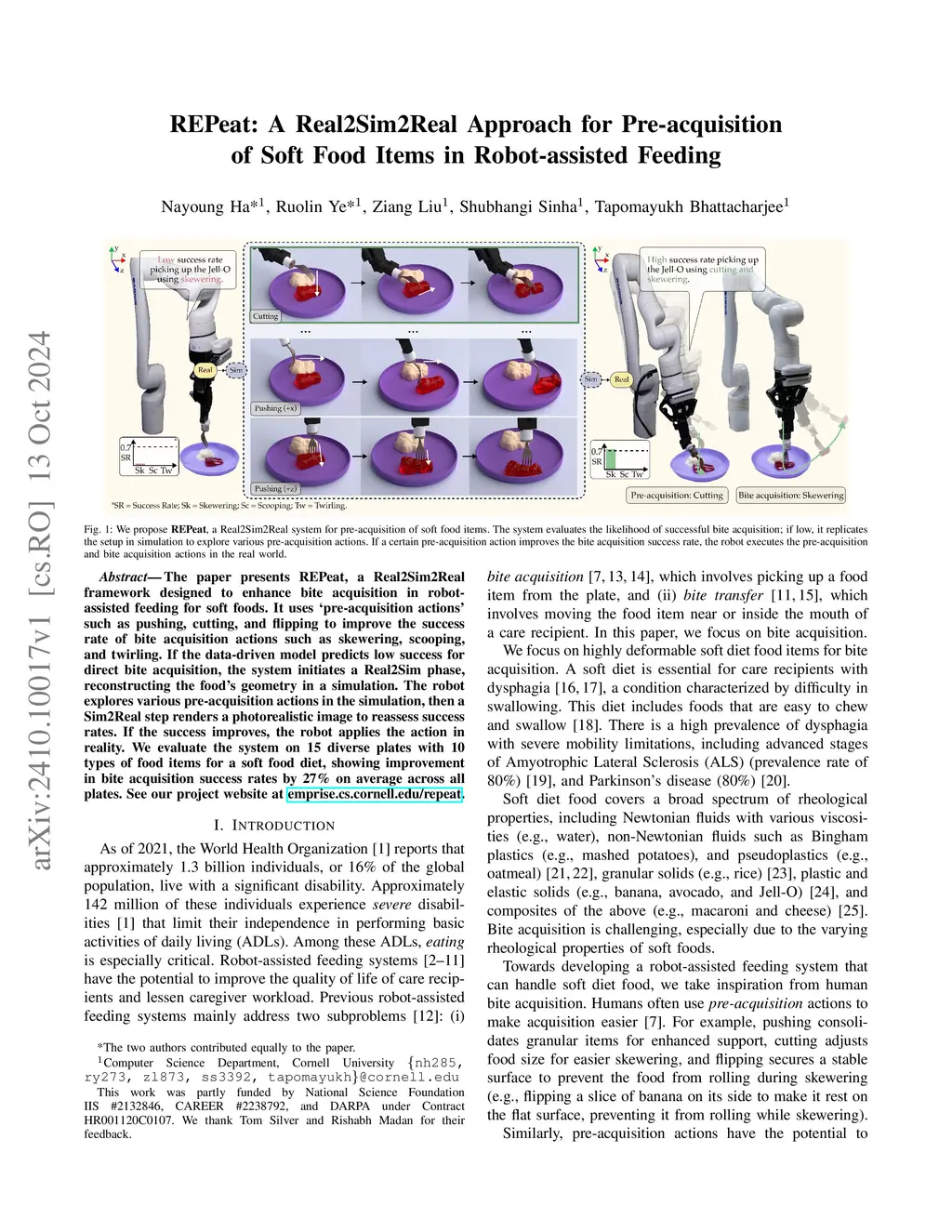 REPeat: A Real2Sim2Real Approach for Pre-acquisition of Soft Food Items