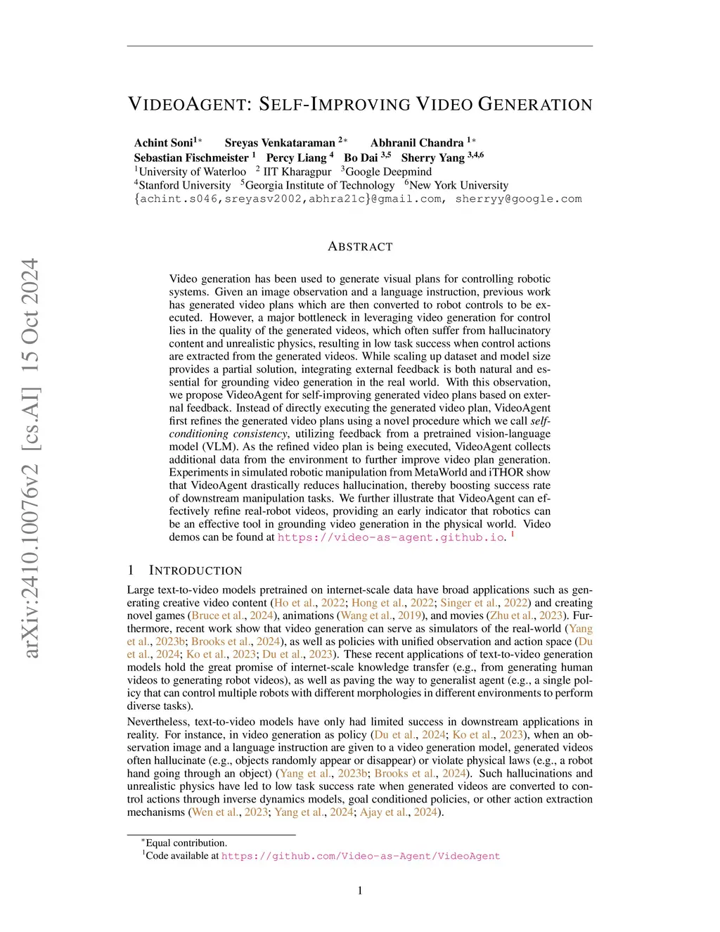 VideoAgent: Self-Improving Video Generation