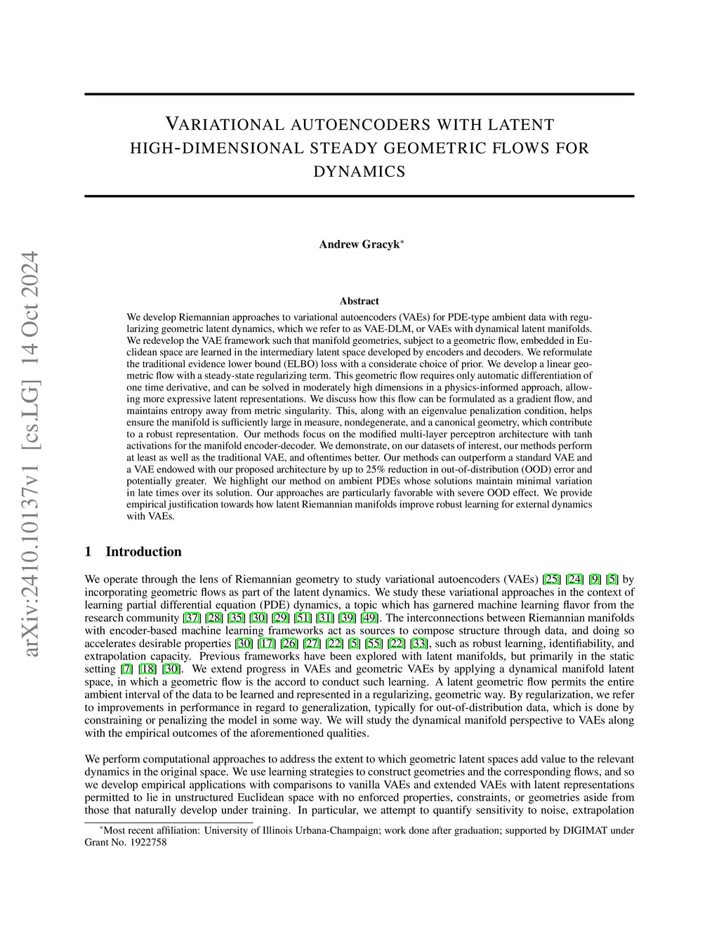 Variational autoencoders with latent high-dimensional steady geometric flows for dynamics