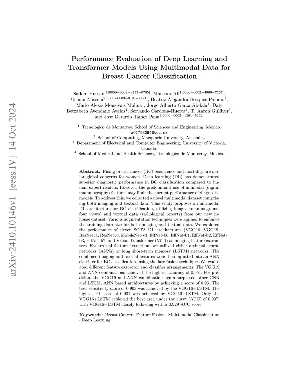Multimodal Data for Breast Cancer Classification