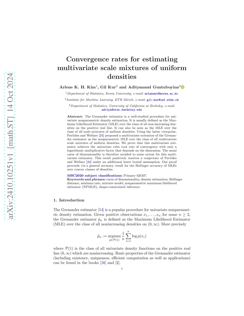 The Grenander estimator is a well-studied procedure for univariate nonparametric density estimation. It is usually defined as the Maximum Likelihood Estimator (MLE) over the class of all non-increasing densities on the positive real line. It can also be seen as the MLE over the class of all scale mixtures of uniform densities. Using the latter viewpoint, Pavlides and Wellner~\cite{pavlides2012nonparametric} proposed a multivariate extension of the Grenander estimator as the nonparametric MLE over the class of all multivariate scale mixtures of uniform densities. We prove that this multivariate estimator achieves the univariate cube root rate of convergence with only a logarithmic multiplicative factor that depends on the dimension. The usual curse of dimensionality is therefore avoided to some extent for this multivariate estimator. This result positively resolves a conjecture of Pavlides and Wellner~\cite{pavlides2012nonparametric} under an additional lower bound assumption. Our proof proceeds via a general accuracy result for the Hellinger accuracy of MLEs over convex classes of densities.