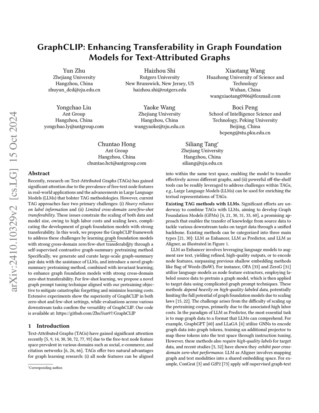 GraphCLIP: Enhancing Transferability in Graph Foundation Models for Text-Attributed Graphs