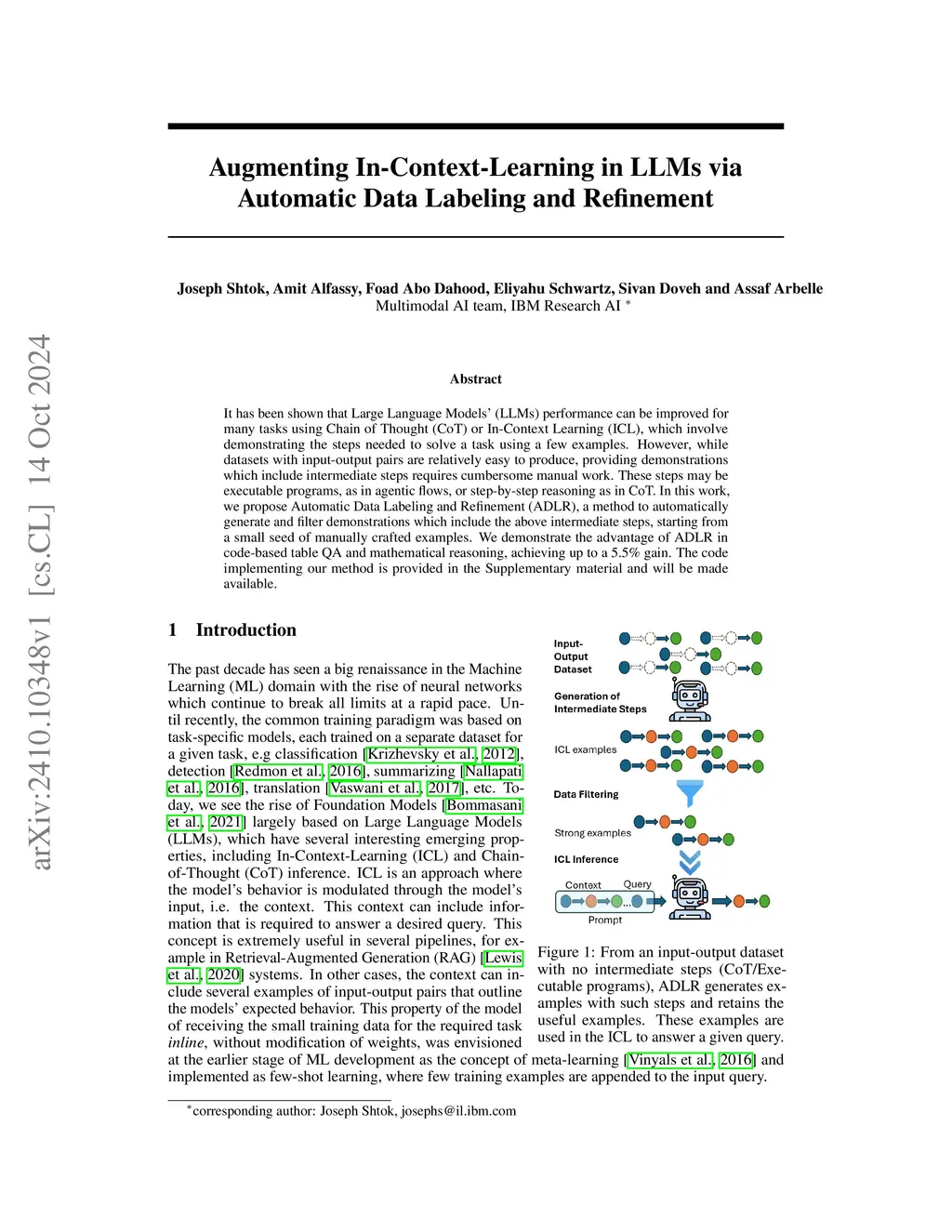It has been shown that Large Language Models' (LLMs) performance can be improved for many tasks using Chain of Thought (CoT) or In-Context Learning (ICL), which involve demonstrating the steps needed to solve a task using a few examples. However, while datasets with input-output pairs are relatively easy to produce, providing demonstrations which include intermediate steps requires cumbersome manual work. These steps may be executable programs, as in agentic flows, or step-by-step reasoning as in CoT. In this work, we propose Automatic Data Labeling and Refinement (ADLR), a method to automatically generate and filter demonstrations which include the above intermediate steps, starting from a small seed of manually crafted examples. We demonstrate the advantage of ADLR in code-based table QA and mathematical reasoning, achieving up to a 5.5% gain. The code implementing our method is provided in the Supplementary material and will be made available.